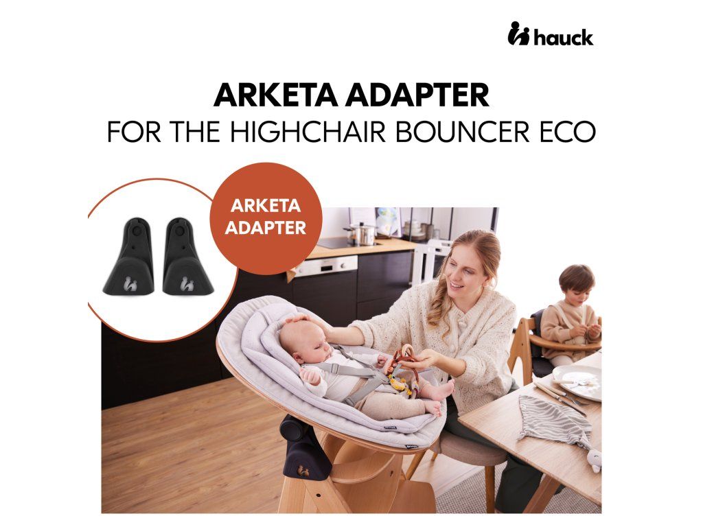 Vaša drevená vysoká stolička Arketa a Bouncer ( lehátko ) sú perfektnou kombináciou pre vašu domácnosť. Všetko, čo potrebujete, je adaptér Arketa a vaše dieťa je vždy s vami, hneď od narodenia. Arketa adaptér stačí kliknúť na detskú stoličku.