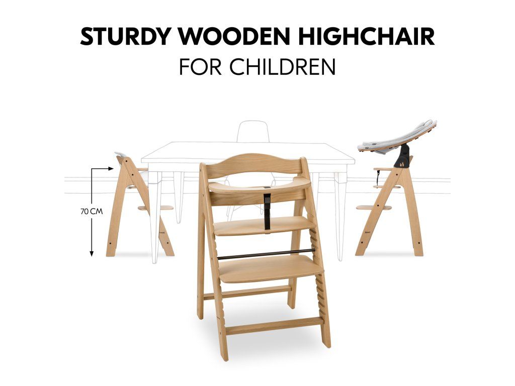 Máte radi svoje bábätko vo výške očí? Vaša drevená vysoká stolička Arketa a lehátko sú dokonalá kombinácia pre vašu jedáleň, ktorá vám umožní zapojiť vášho drobca hneď od začiatku.