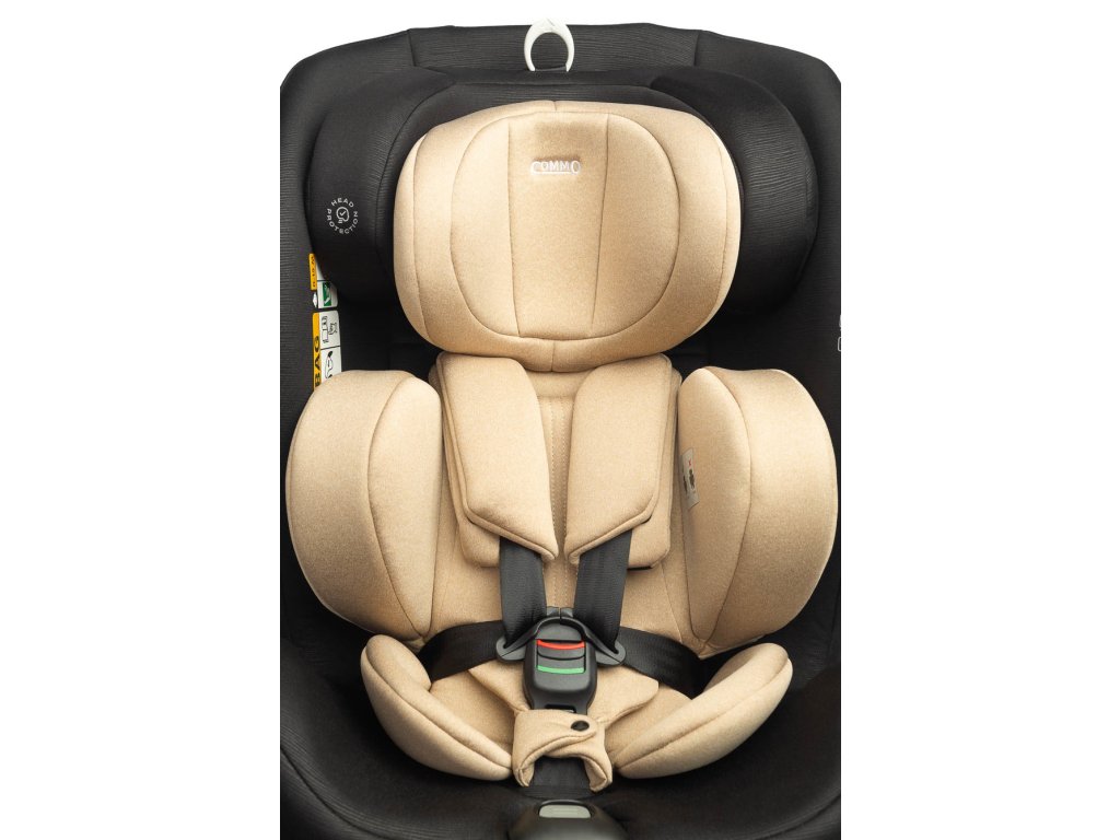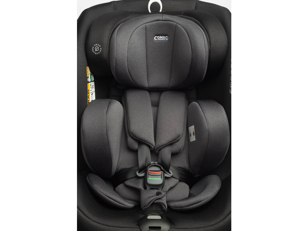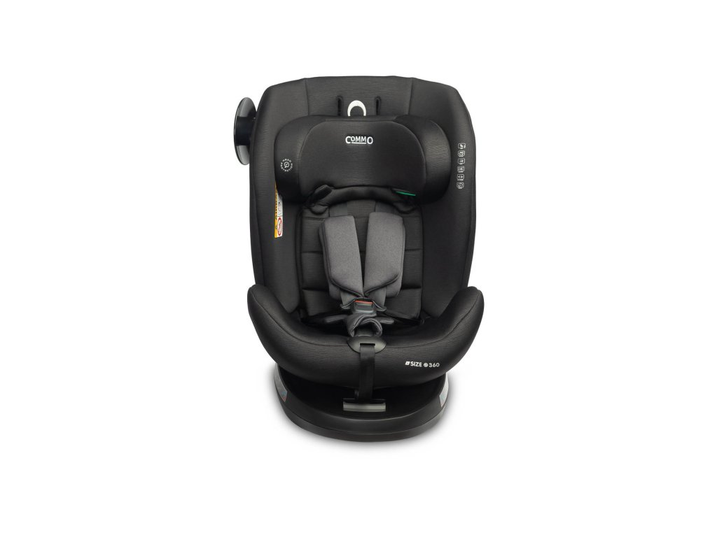 Caretero COMMO je moderná autosedačka s náročným schválením i-Size. Sedačka je určená pre deti od prvých mesiacov života (od 40 cm) až do momentu, kedy už sedačku nie je potrebná, t.j. keď dosiahnu výšku 150 cm. Inštalácia do auta je veľmi jednoduchá a rýchla vďaka háčikom ISOFIX a opasku TopTether s prídavnou prackou so zvukovou signalizáciou. Sedačku je možné otáčať o 360 stupňov, čo uľahčuje umiestnenie dieťaťa do sedačky. Špičkový komfort poskytuje pohodlná vložka s nastaviteľnou opierkou hlavy. Čalúnenie je vyrobené z kvalitnej polyesterovej tkaniny zaisťujúcej dieťaťu pohodlie pri jazde. Vďaka viacstupňovému nastaveniu opierky hlavy je možné sedačku perfektne prispôsobiť výške dieťaťa a zabezpečiť tak správnu oporu oblasti krku a hlavy. Commo má 5 stupňov sklonu v polohe v smere jazdy aj v smere jazdy. Pracka 5-bodových bezpečnostných pásov je vybavená zvukovým signálom, ktorý pri odopnutí zapípa. Ďalšou výhodou je bočná SIP (Side Impact Protection) podložka, ktorá je umiestnená na bočnej stene sedačky a zaručuje zvýšenú bezpečnosť v prípade kolízie na ceste.