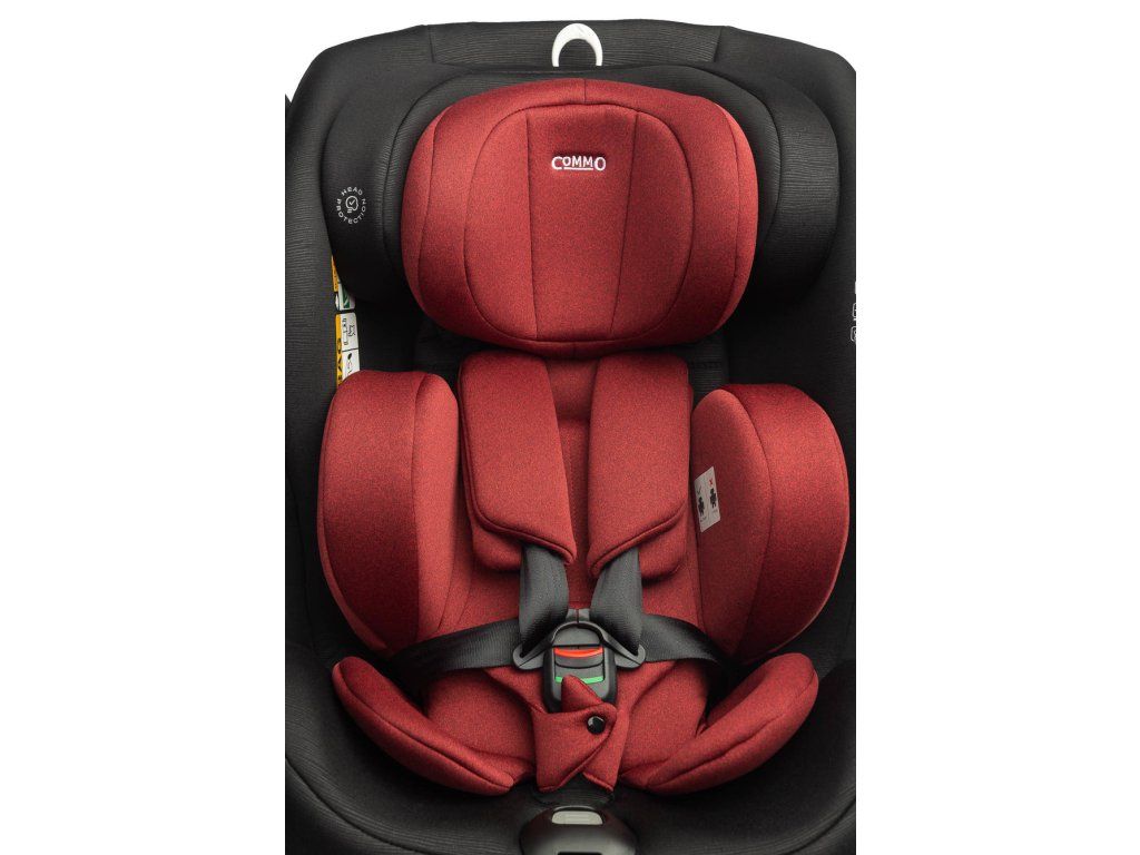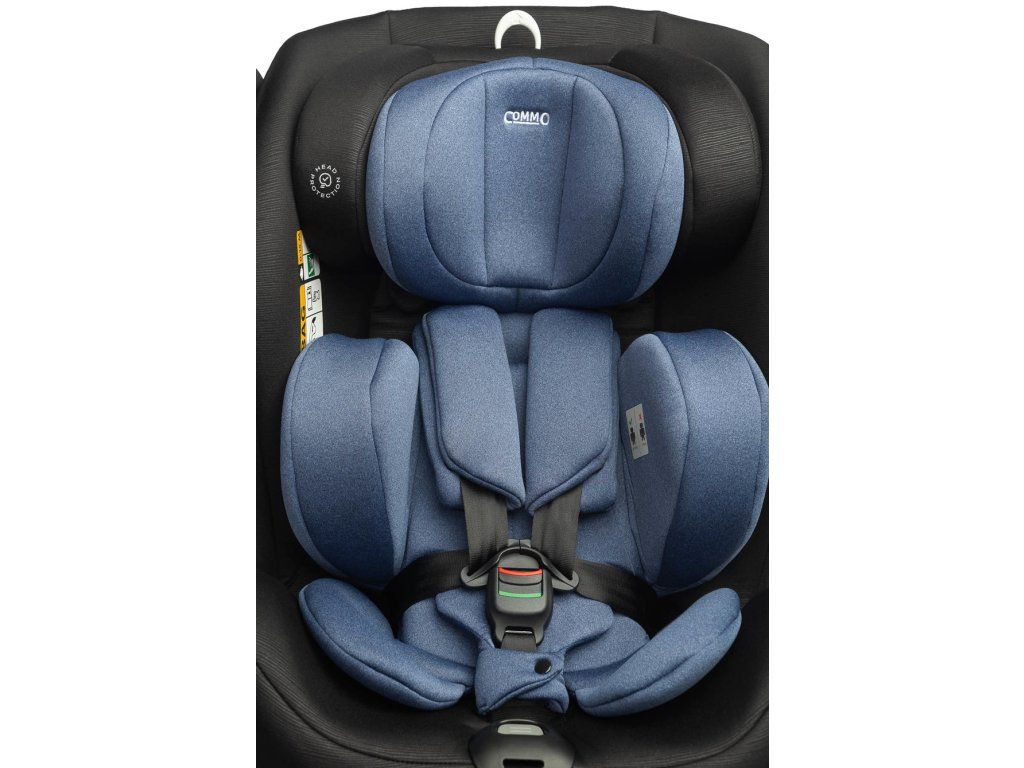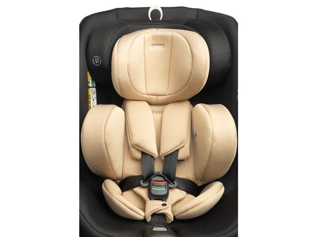 Špičkový komfort poskytuje pohodlná vložka s nastaviteľnou opierkou hlavy. Čalúnenie je vyrobené z kvalitnej polyesterovej tkaniny zaisťujúcej dieťaťu pohodlie pri jazde. Vďaka viacstupňovému nastaveniu opierky hlavy je možné sedačku perfektne prispôsobiť výške dieťaťa a zabezpečiť tak správnu oporu oblasti krku a hlavy. Commo má 5 stupňov sklonu v polohe v smere jazdy aj v smere jazdy. Pracka 5-bodových bezpečnostných pásov je vybavená zvukovým signálom, ktorý pri odopnutí zapípa. Ďalšou výhodou je bočná SIP (Side Impact Protection) podložka, ktorá je umiestnená na bočnej stene sedačky a zaručuje zvýšenú bezpečnosť v prípade kolízie na ceste.