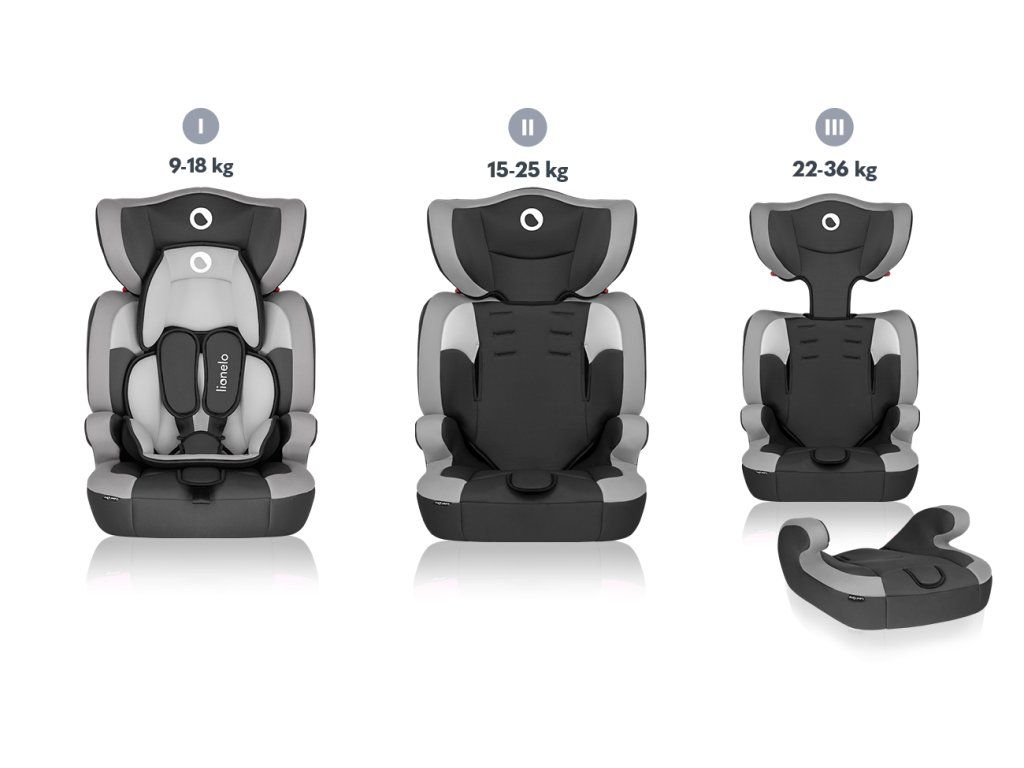 Vďaka nastaveniu opierky hlavy produkt rastie spolu s dieťaťom a je možné ho používať až do veku asi 12 rokov. Modulárna konštrukcia modelu Levi One dáva starším deťom možnosť cestovať v autosedačke s operadlom alebo iba pomocou podsedáka. Sedadlo je pripevnené proti smeru jazdy pomocou bezpečnostných pásov automobilu.