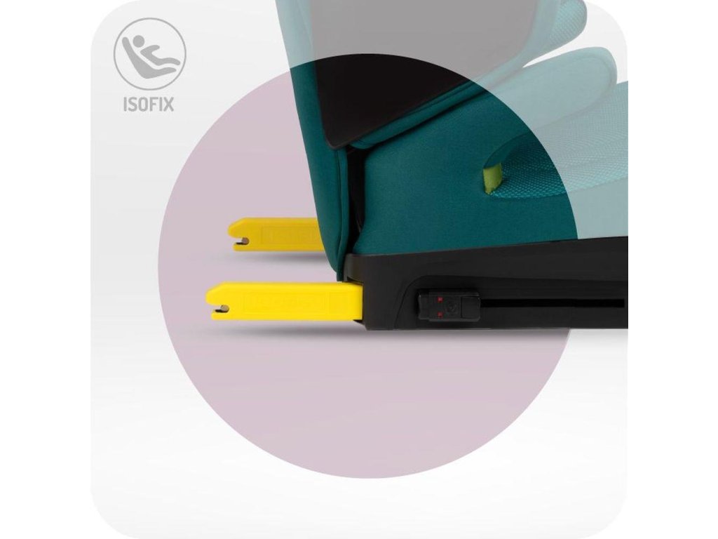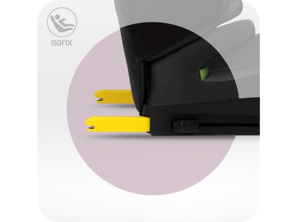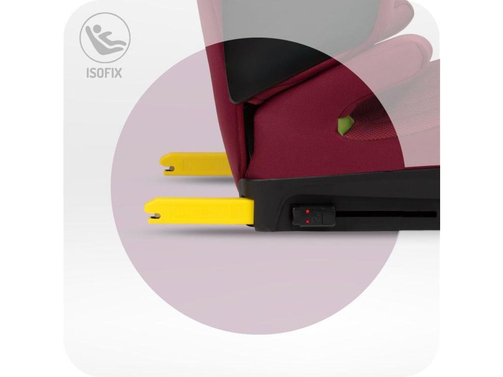 - Viditeľný indikátor pre potvrdenie správneho upevnenia medzi základňou ISOFIX a autosedačkou, ktorý znižuje riziko nesprávnej montáže