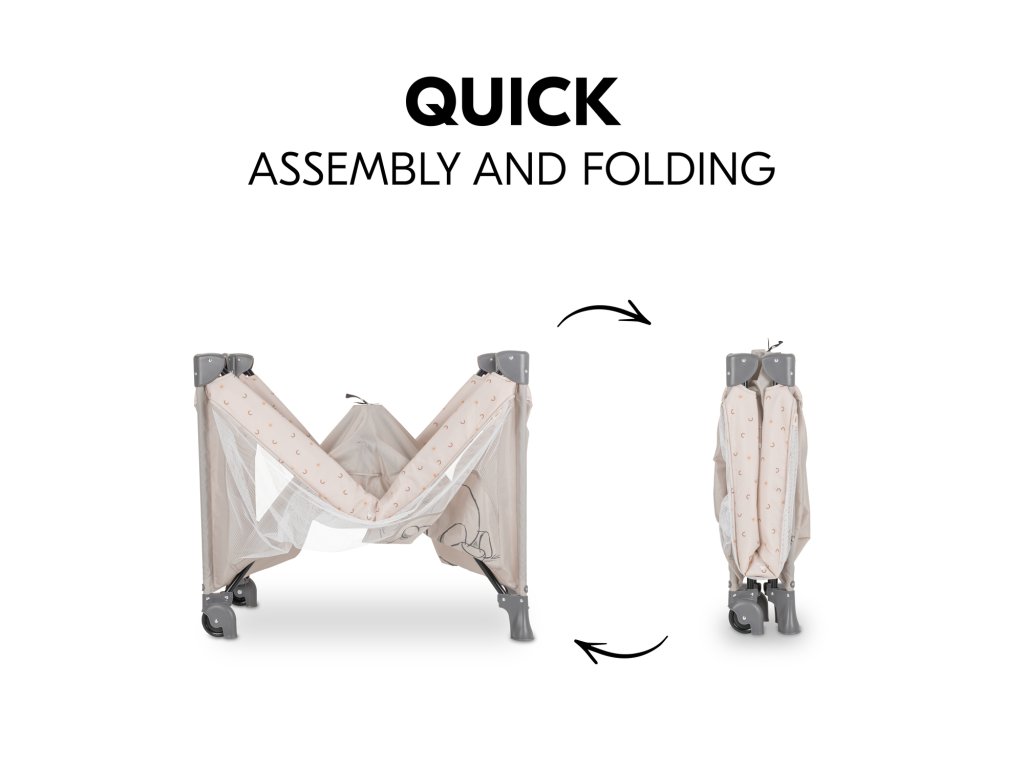 Ak máte radi veci nekomplikované, Dream N Play Go si zamilujete. Dá sa zložiť a rozložiť v niekoľko jednoduchých krokov. A vďaka kolieskam ju jednoducho zasuniete aj do inej miestnosti.
