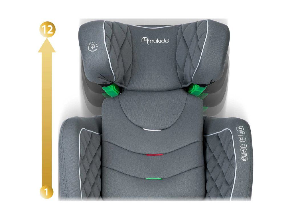 ✅ 12 stupňov nastavenia opierky hlavy - umožní vám dokonale prispôsobiť výšku autosedačky potrebám vášho dieťaťa, čím zaistí pohodlnú a bezpečnú cestu.