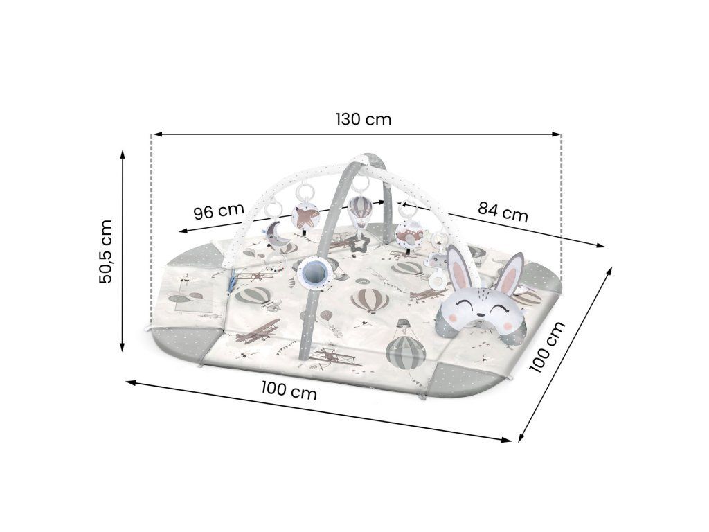 - sada obsahuje: podložku, 5 stien, 2 oblúky, 7 multifunkčných hračiek vrátane vankúša na ležanie na brušku ZDARMA,