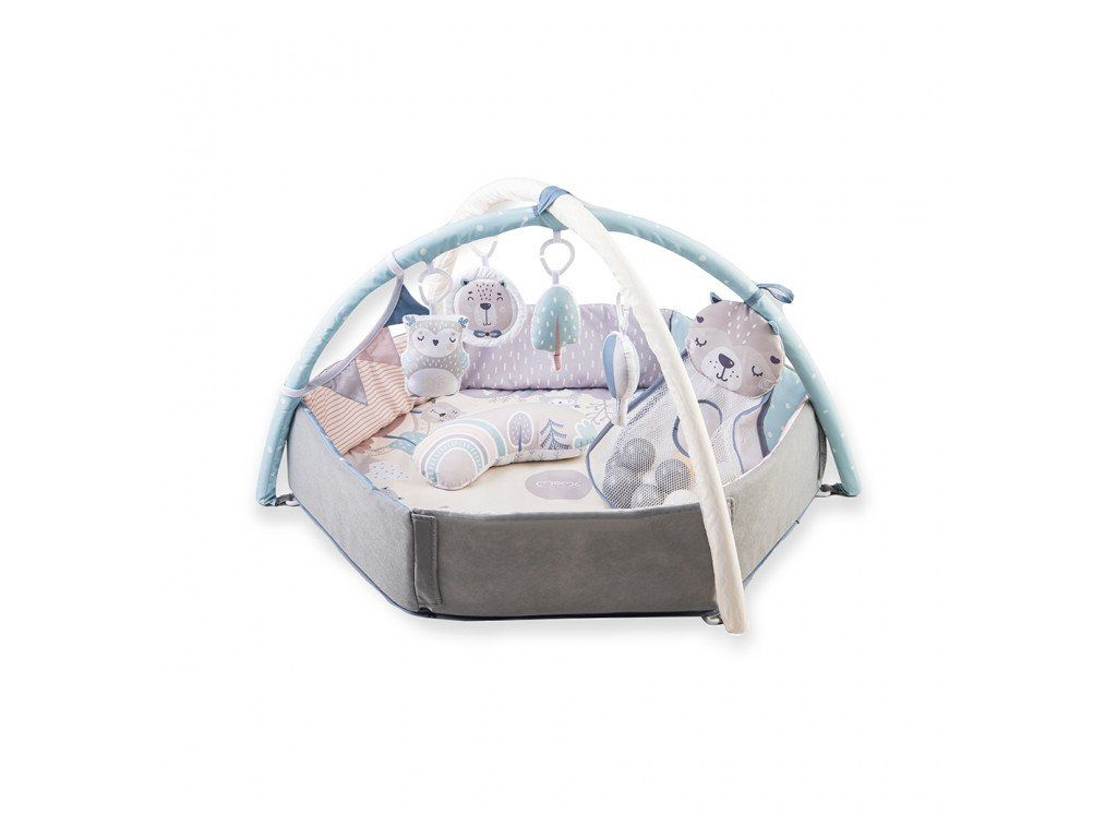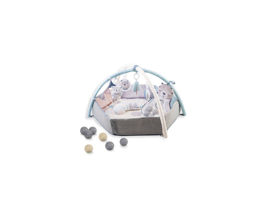 Hracia deka s hrazdičkami a zavesenými hračkami ponúka deťom priestor na ležanie a hranie, ako v polohe na chrbátiku, tak v polohe na brušku. Dievčatká a chlapci môžu objavovať farby, tvary aj štruktúry materiálu.