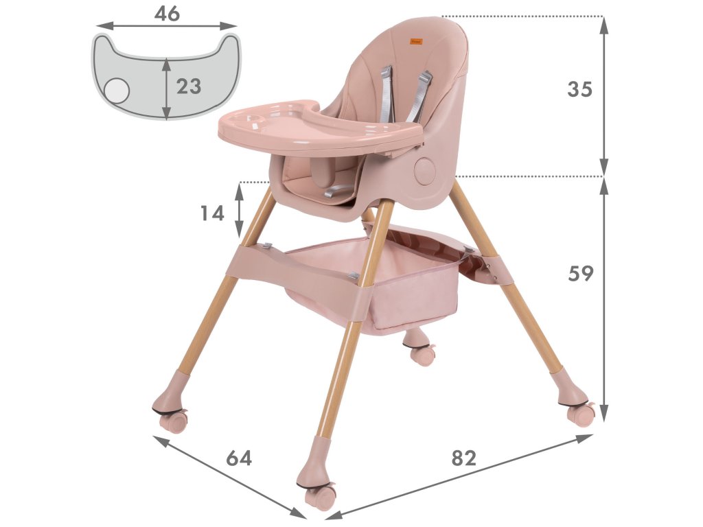 Kidwell KARIMI 2v1 pink detská jedálenská stolička