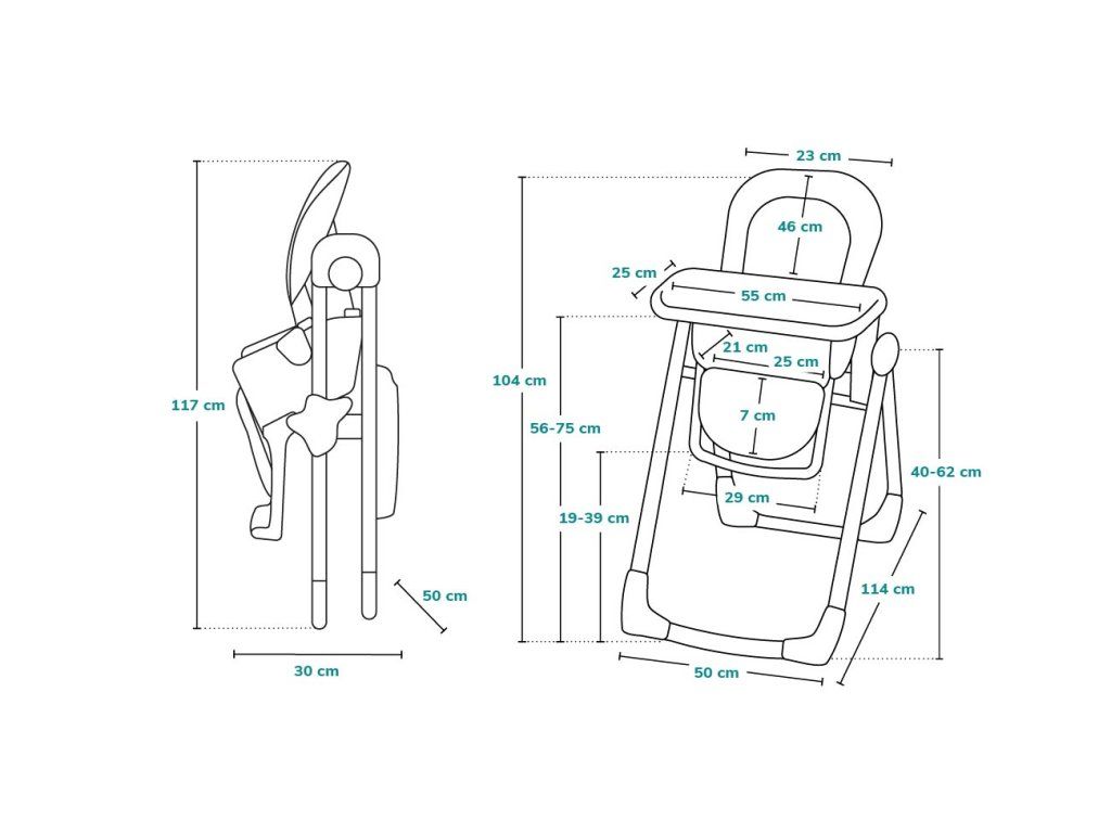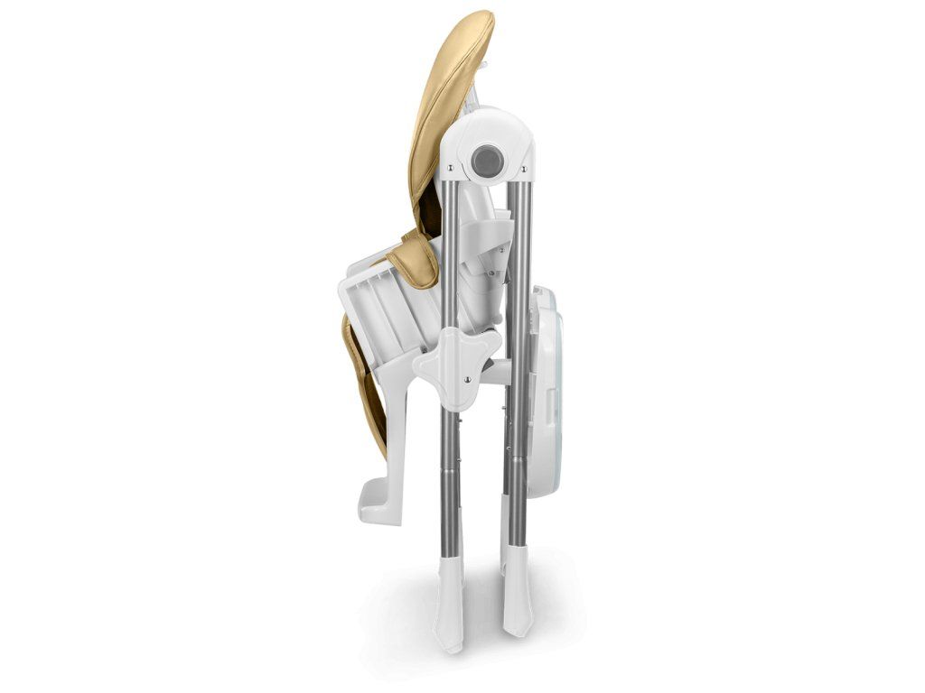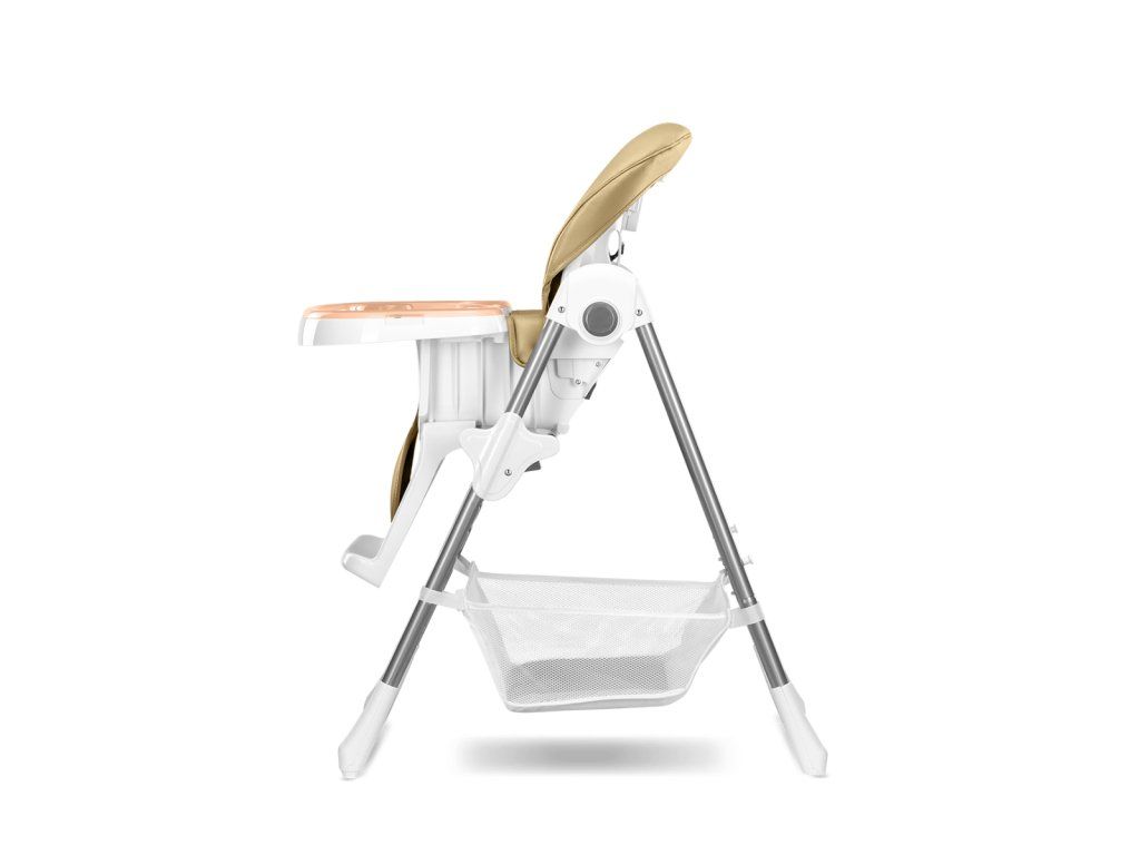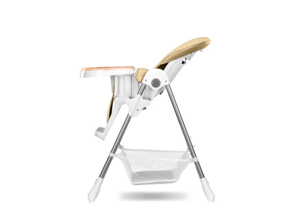 Detská jedálenská stolička, ktorú je možné ľahko sklopiť čím šetrí dôležité miesto. Stolička má pevný kovový rám a pohodlnú mäkkú vložku na sedenie. Stoličku je možné výškovo regulovať. Rovnako je možné regulovať aj vzdialenosť tácky.