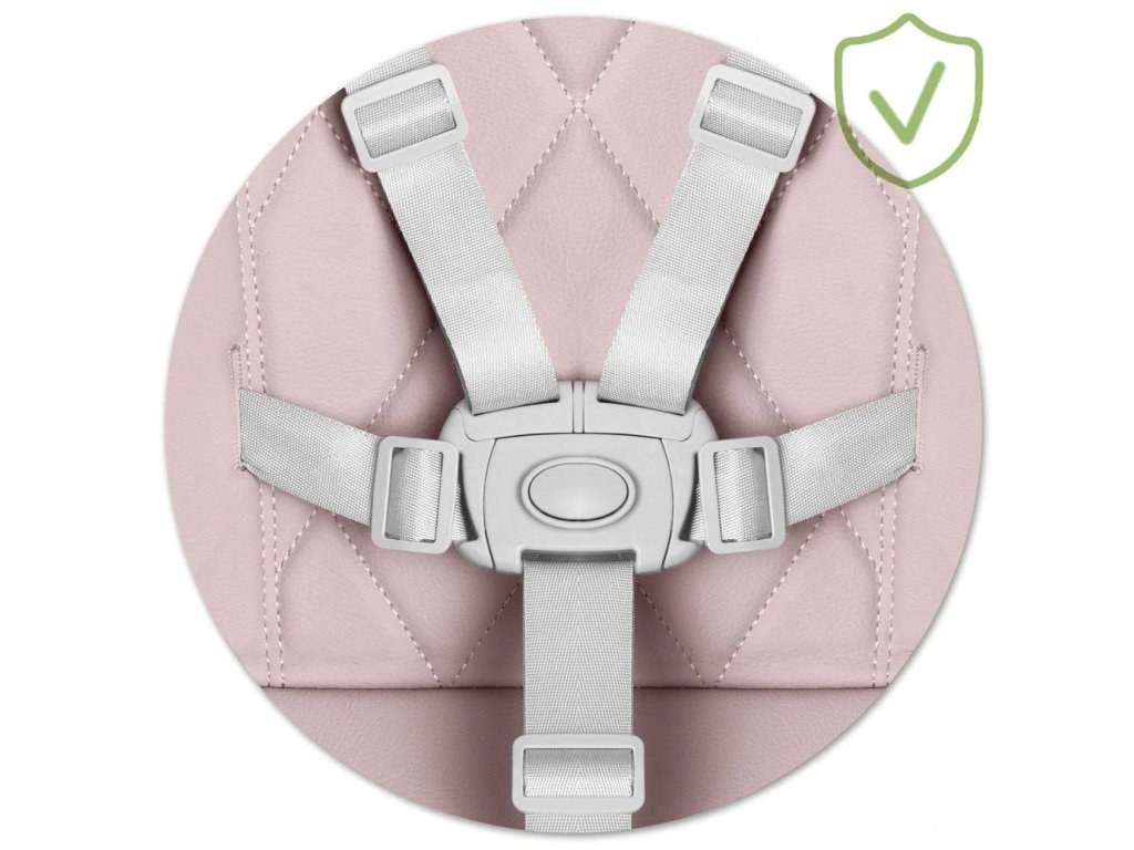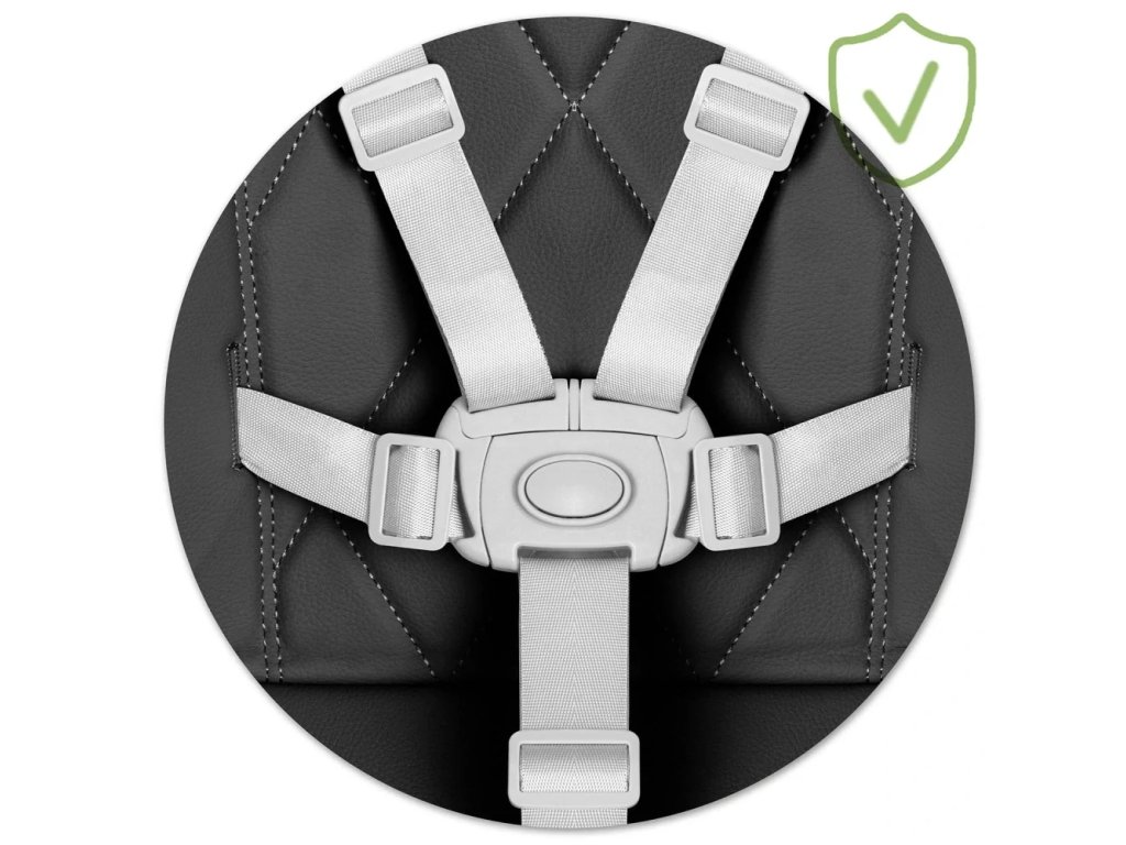 Spoľahlivé a osvedčené päťbodové bezpečnostné pásy zabezpečia, že vaše dieťa nebude môcť samo opustiť stoličku a riskovať pád.
