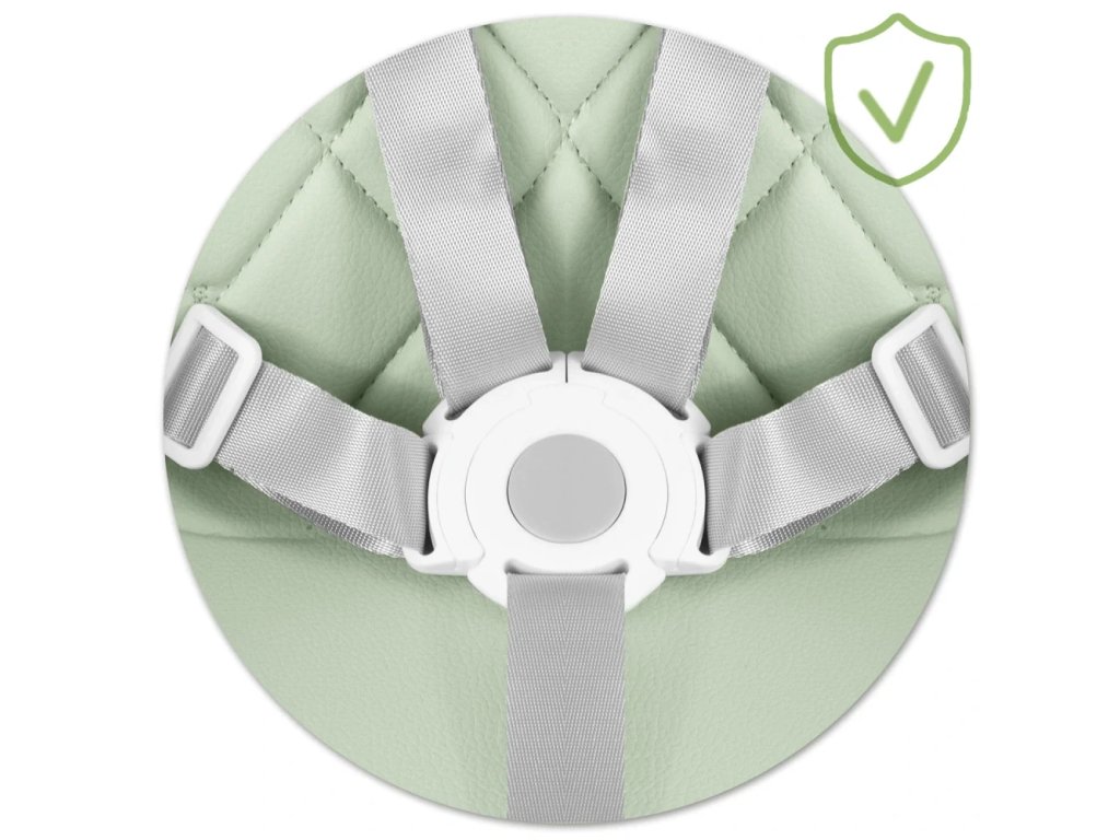 Spoľahlivé a osvedčené päťbodové bezpečnostné pásy zabránia tomu, aby dieťa samo opustilo stoličku a riskovalo pád.