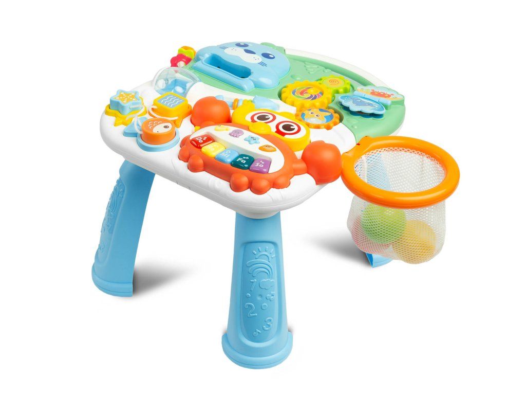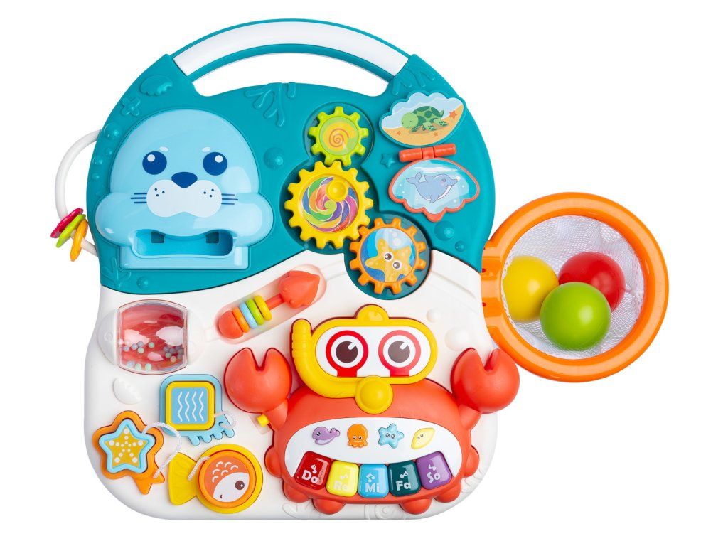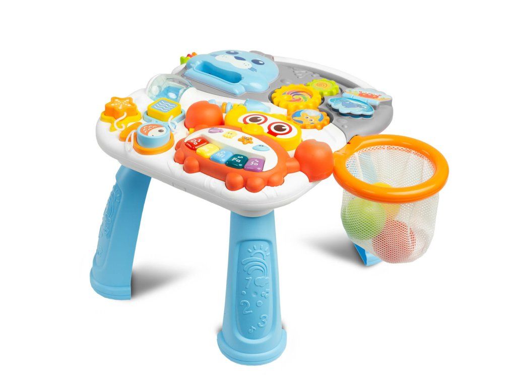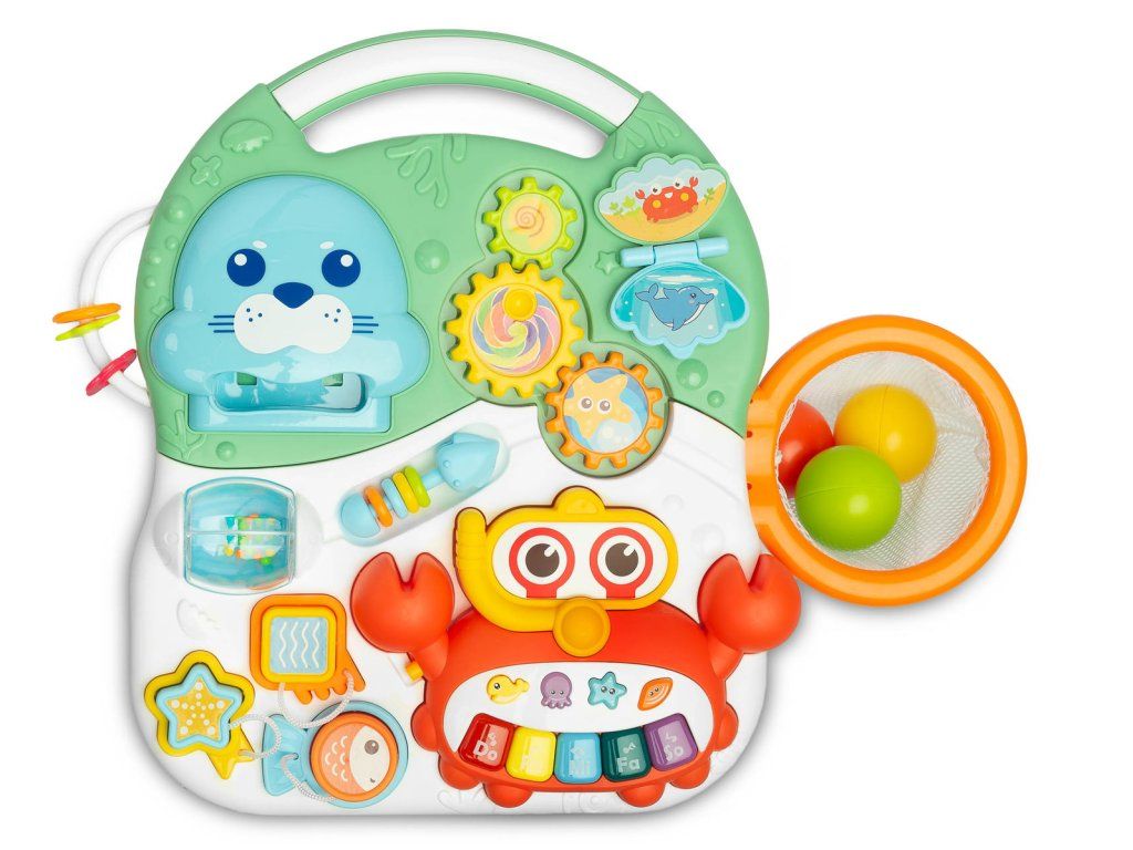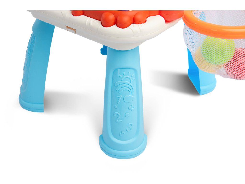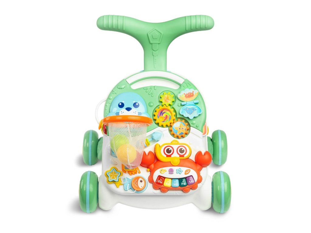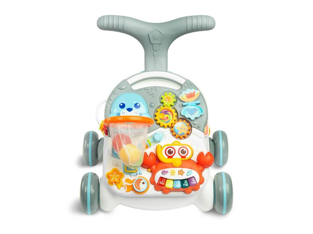 Spark je vzdelávacia hračka ideálna pre dieťa, ktoré už začalo robiť prvé krôčiky. Vďaka kombinácii viacerých možností v jednej hračke zabaví batoľa na mnoho hodín. Môže fungovať ako odrážadlo alebo interaktívny stôl s množstvom atrakcií. Zábavu spríjemní kôš, do ktorého môže hádzať 3 plastové loptičky s hrkálkou, piano v tvare kraba, točiace sa ozubené kolesá a mnoho ďalších prekvapení. Predný panel je možné sňať a produkt premeniť na hrací stolík.