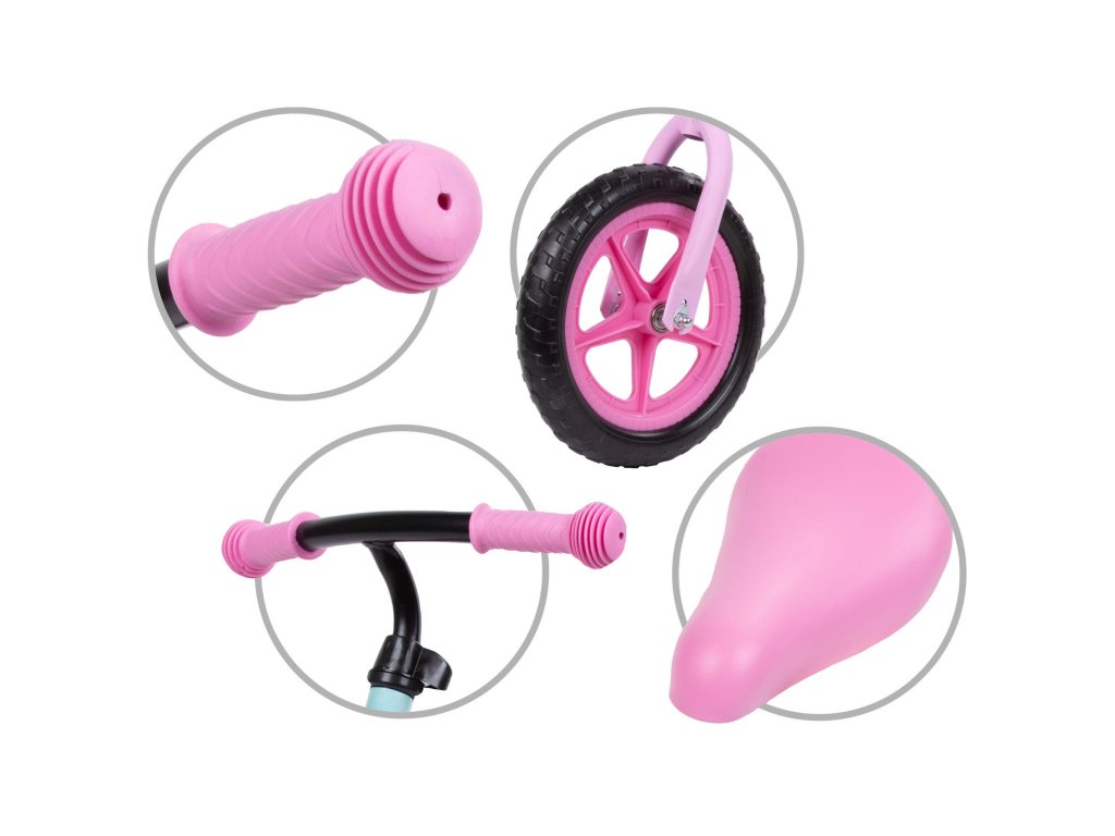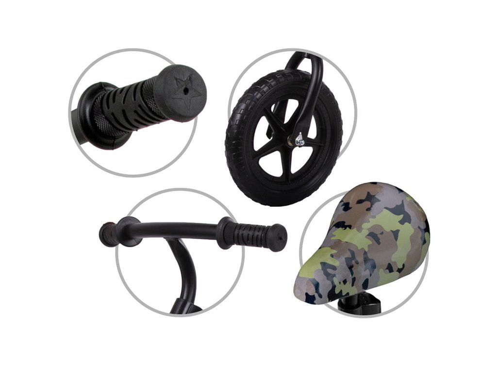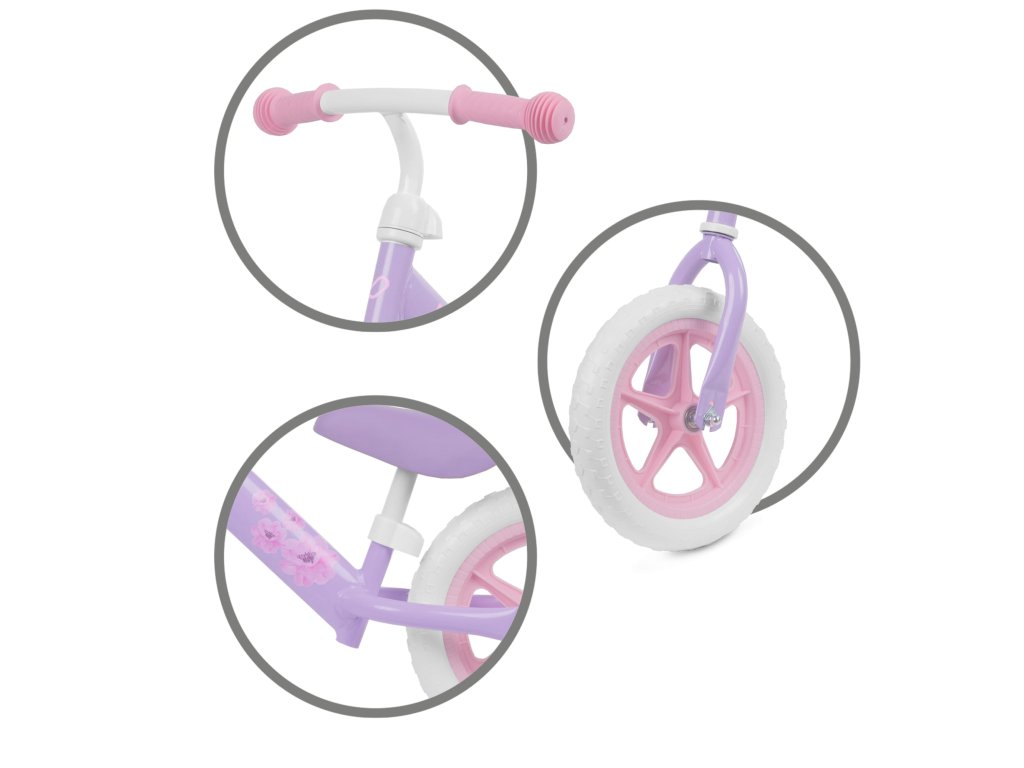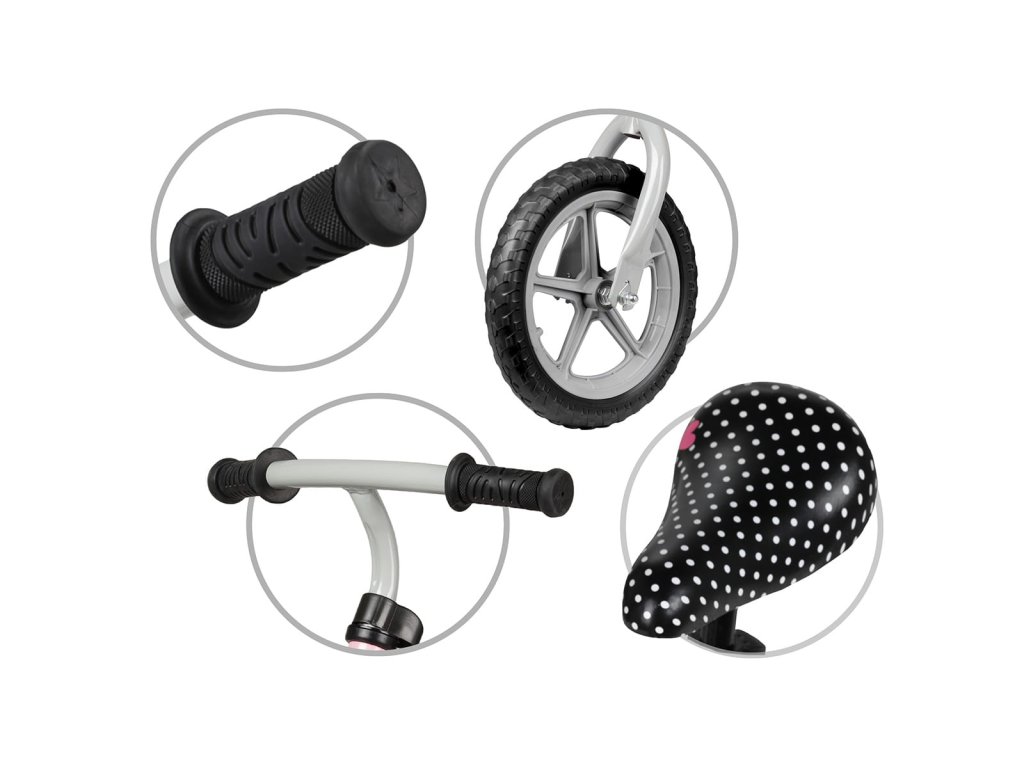 - váha odrážadla je iba 2,64 kg - je menšou záťažou pre dieťa pri učení sa držaní rovnováhy a tiež veľkým pohodlím pre rodičov pri prenášaní bicykla pri prechádzke