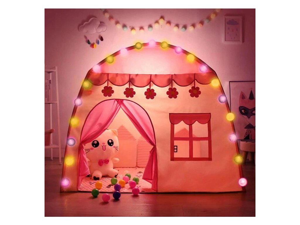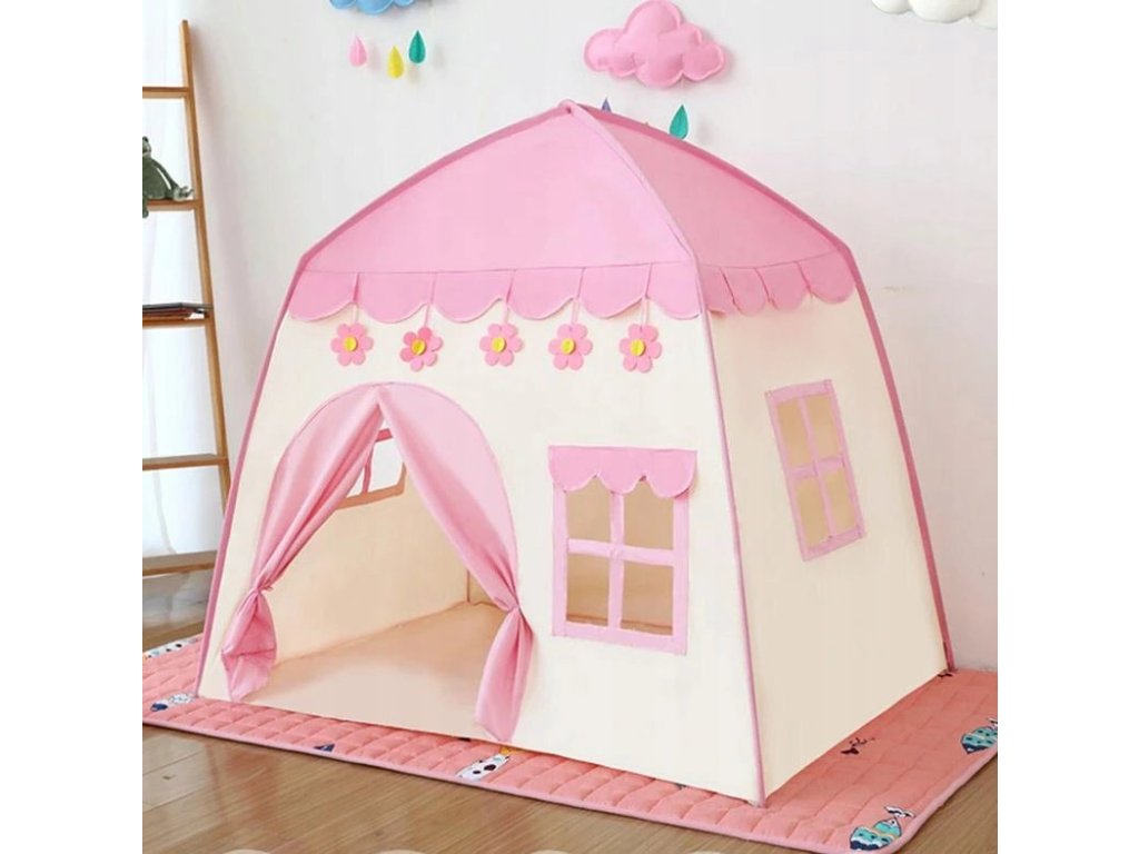 Detský látkový stan stan pre deti v tvare domčeka je vysnívaným darčekom pre každé dievčatko. Detský domček má 3 okná z jemnej sieťoviny a pohodlný vchod. Môžete sa do nej schovať so svojimi obľúbenými hračkami a popustiť uzdu svojej fantázii. Palác pre deti bude ideálnym miestom pre emocionálne a nápadité hry doma aj vonku – napríklad na záhrade, na pikniku, na terase alebo na pláži.