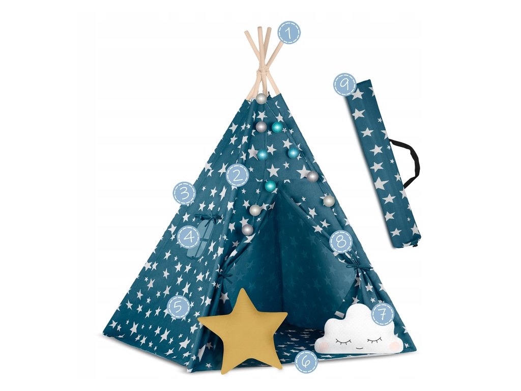 Nukido TeePee stan so svetielkami, tyrkysový