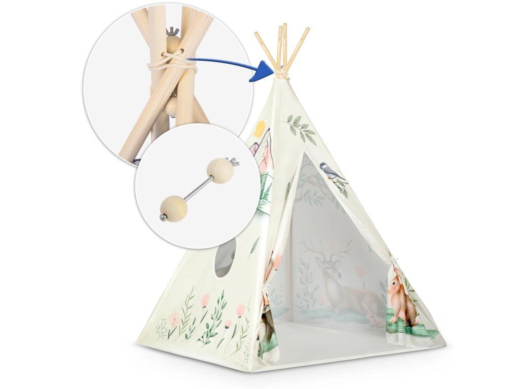 Pokiaľ ide o výrobky pre deti, oplatí sa vybrať odolné materiály najvyššej kvality. Preto je tipí vyrobené z bezpečných certifikovaných prémiových materiálov. Vzdušná látka je ako stvorená pre detské stany, pretože dokonale prepúšťa vzduch. Polyester si zachováva svoj tvar, je odolný a ľahko sa čistí. Vysoká hmotnosť stien zaisťuje, že stan je mimoriadne mäkký, odolný a prežije aj tie najväčšie detské dobrodružstvá.