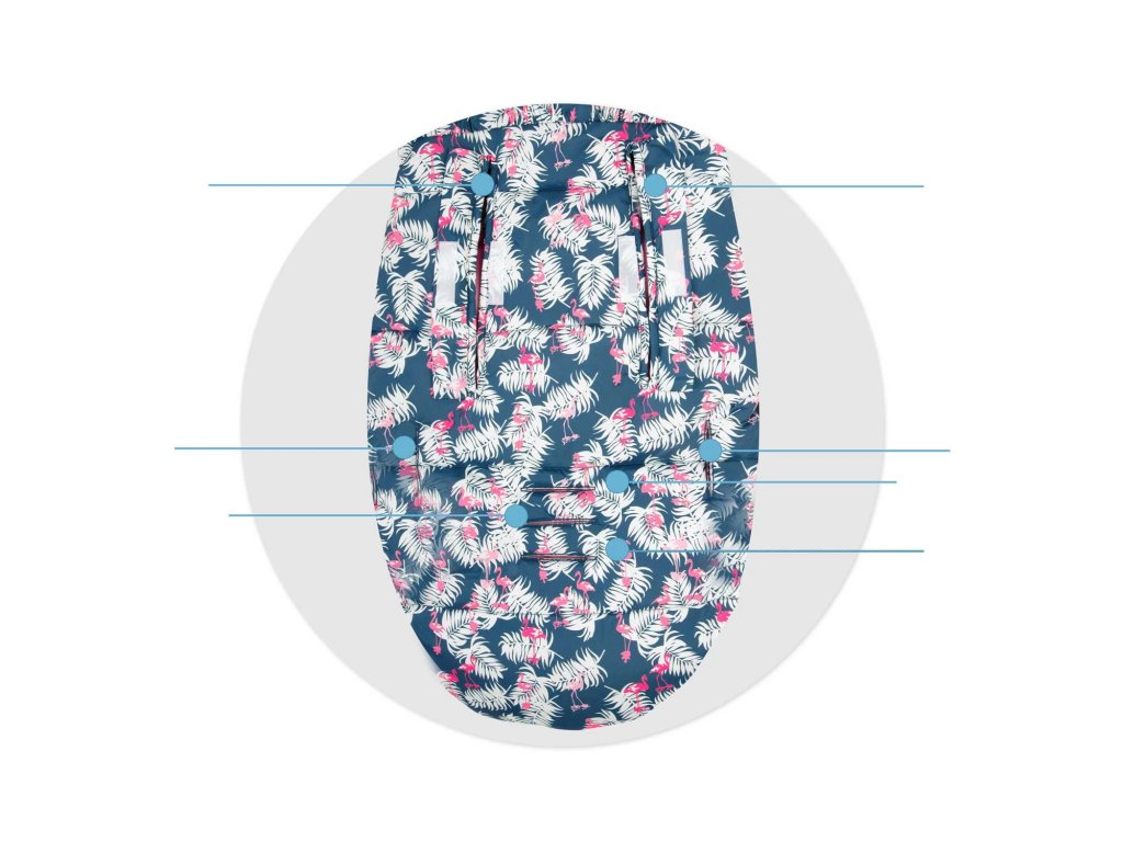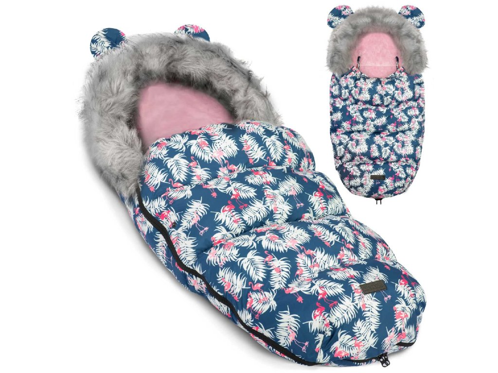 Elmi zimný detský fusak do kočíka s kožušinou – modrý s plameniakmi