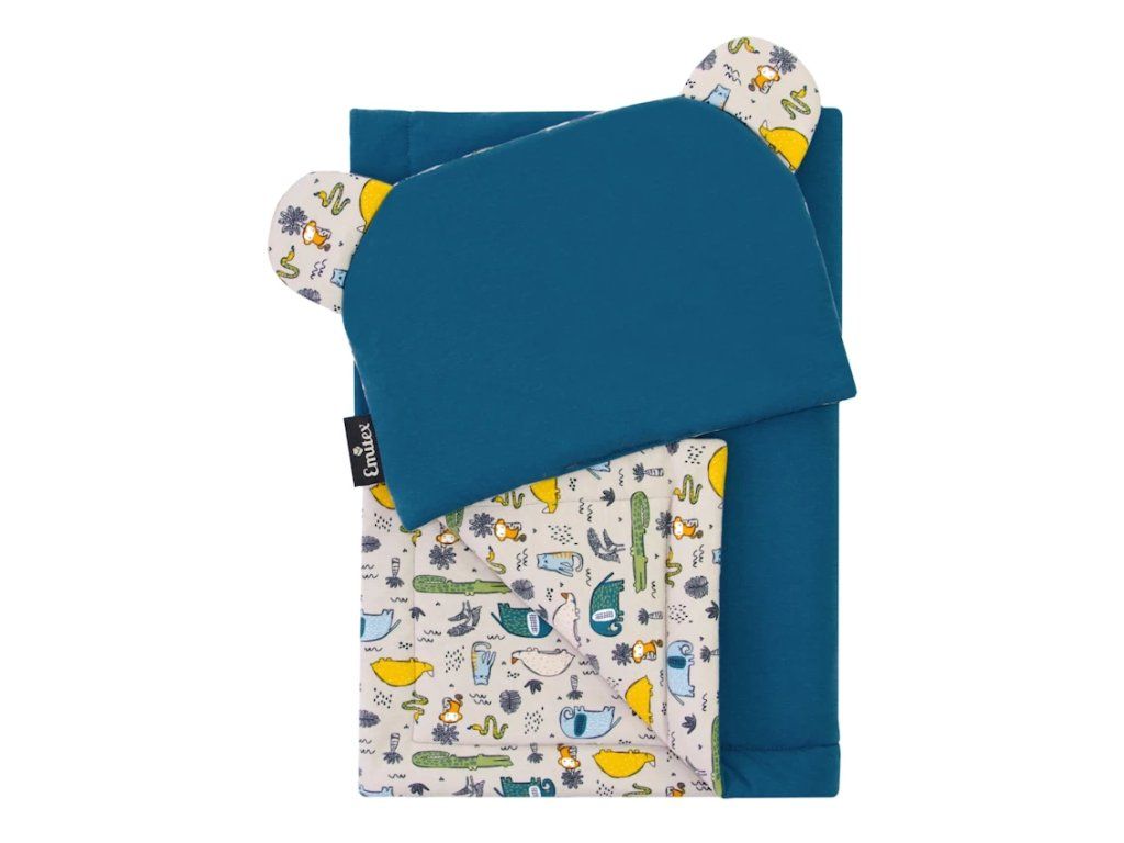 - Súprava sa skladá z deky 70 x 100cm a vankúšika 25 x 35cm, ktorý zdobia roztomilé ušká.