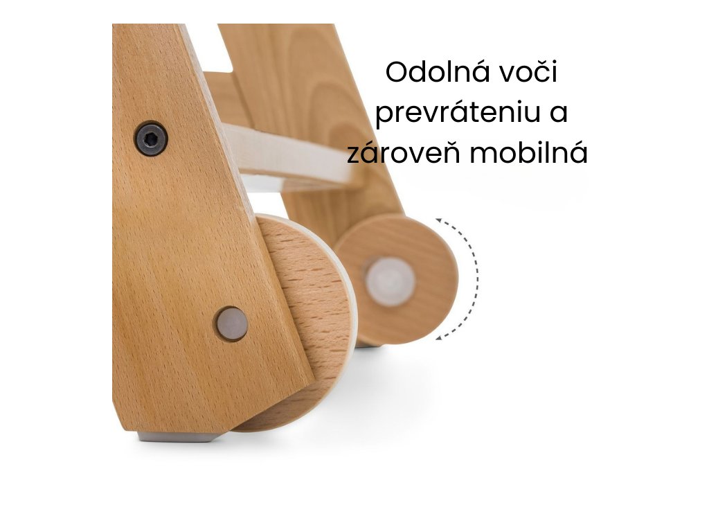 Aby vaše dieťa vždy bezpečne sedelo v detskej stoličke, je vybavená kolieskami proti prevráteniu. Ak sa vaše dieťa odtlačí od stola, stolička sa iba posunie dozadu a neprevráti sa. Kolieska majú tiež výhodu, že ich môžete v prípade potreby flexibilne premiestňovať.
