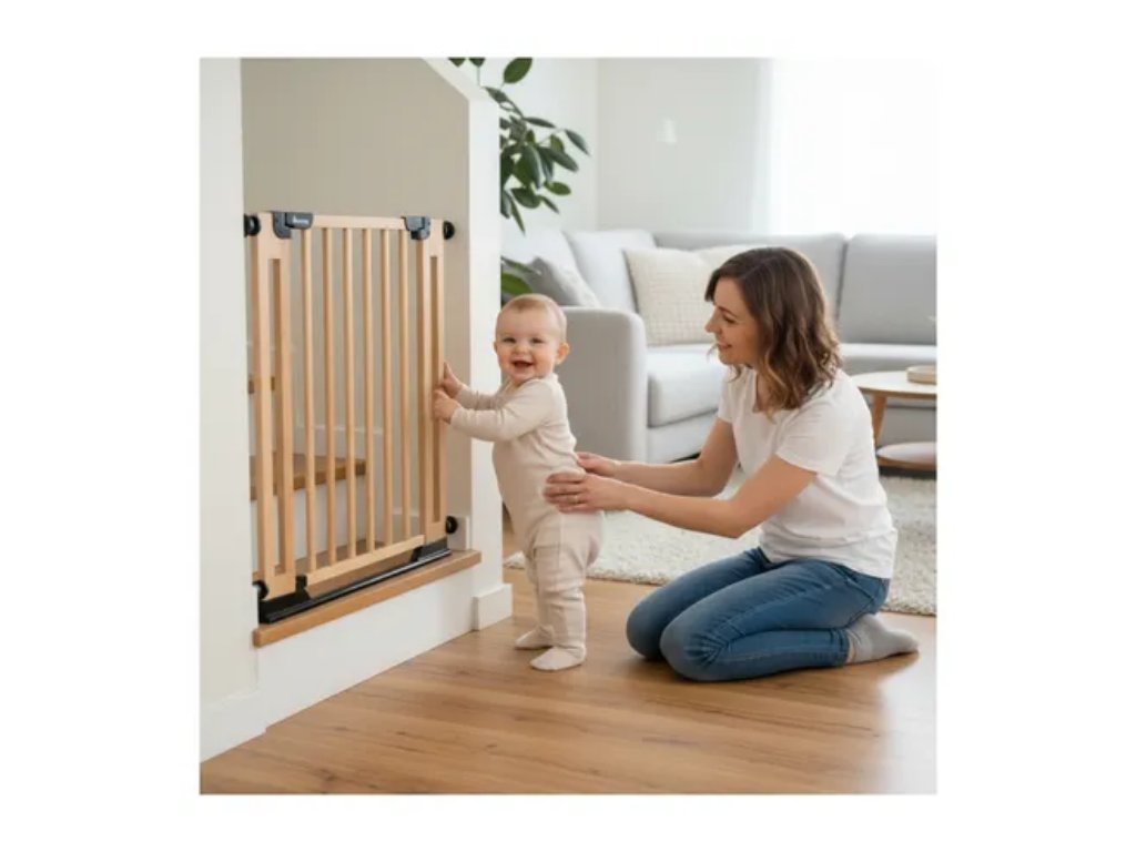 Váš domov – rovnako individuálny ako vy: Bezpečnostná brána na dvere a schody Hauck Clear Step Easyclose Eco sa k vám perfektne hodí. S prírodným dreveným vzhľadom, vyrobené z udržateľného bukového dreva s certifikátom FSC®.