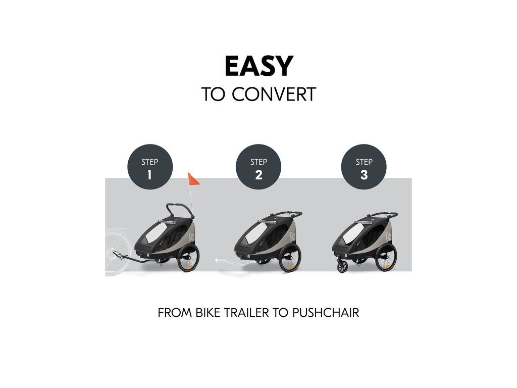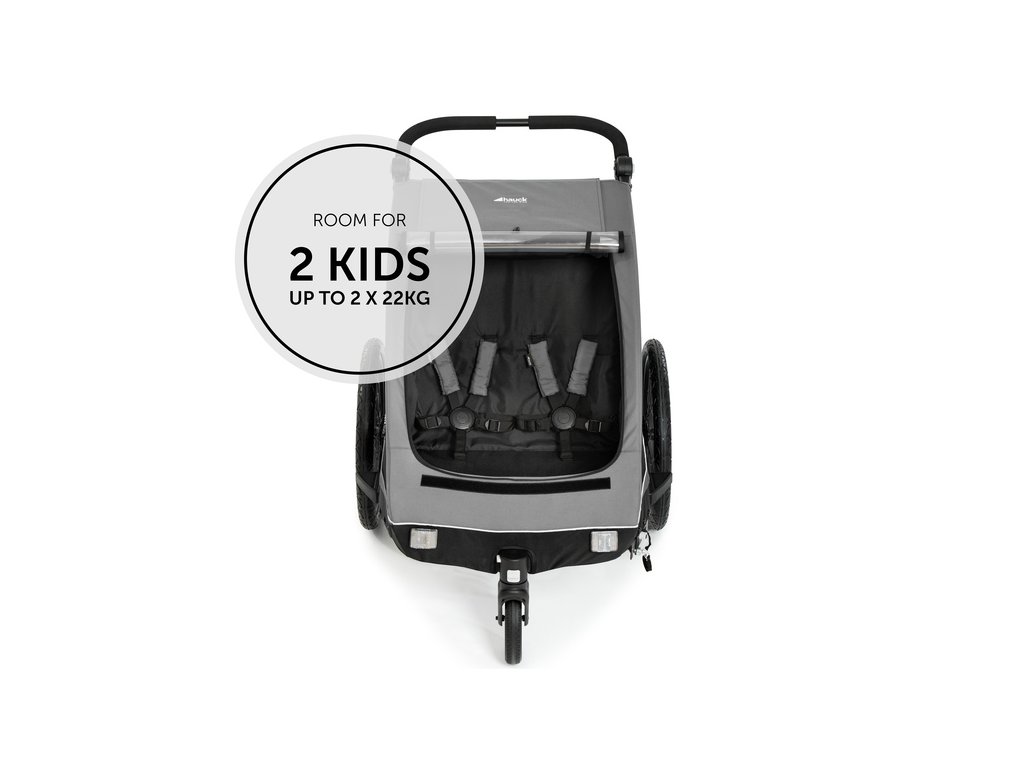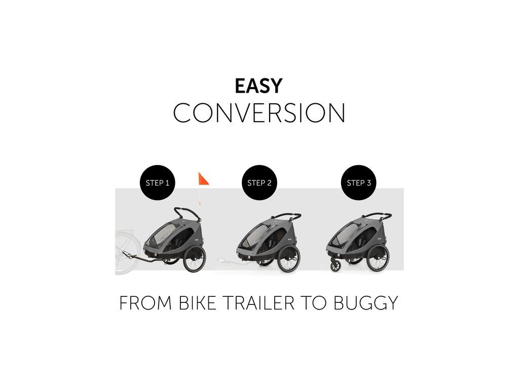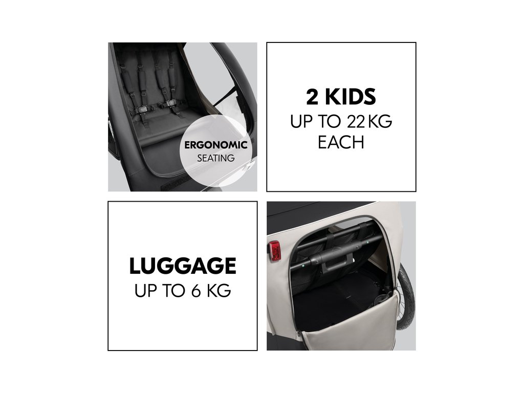 Bez ohľadu na to, či je kočíkom alebo prívesom na bicykli, zaisťuje bezpečnosť a pohodlie Vašich detí a tiež jednoduchú manipuláciu pre Vás.
