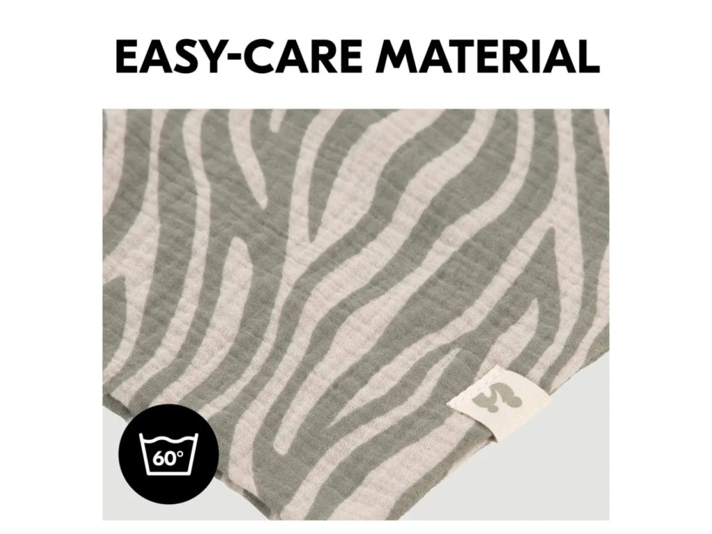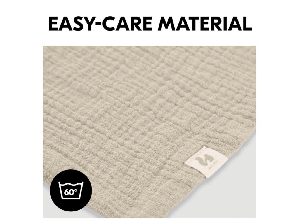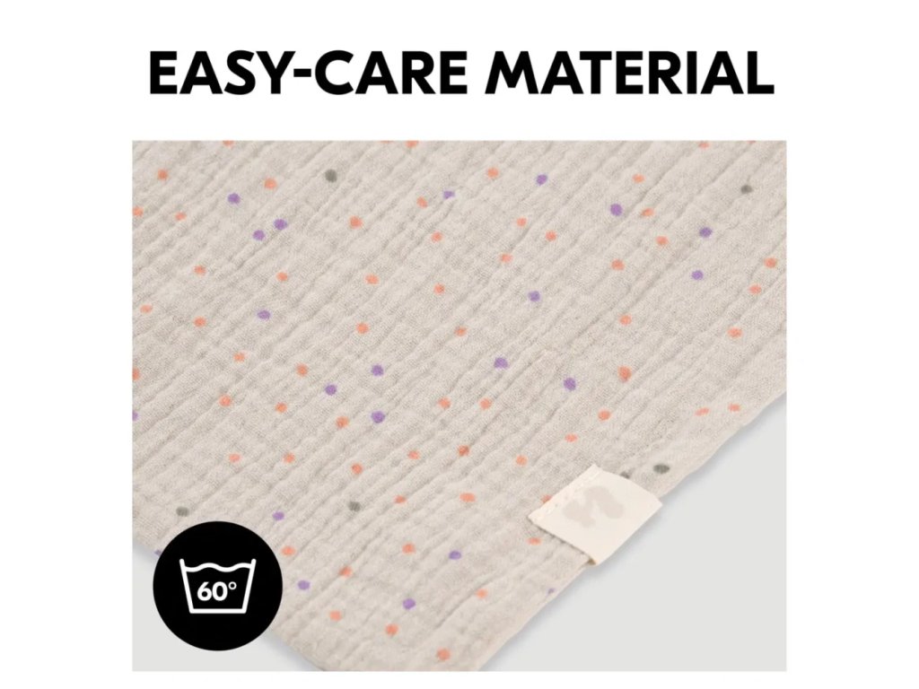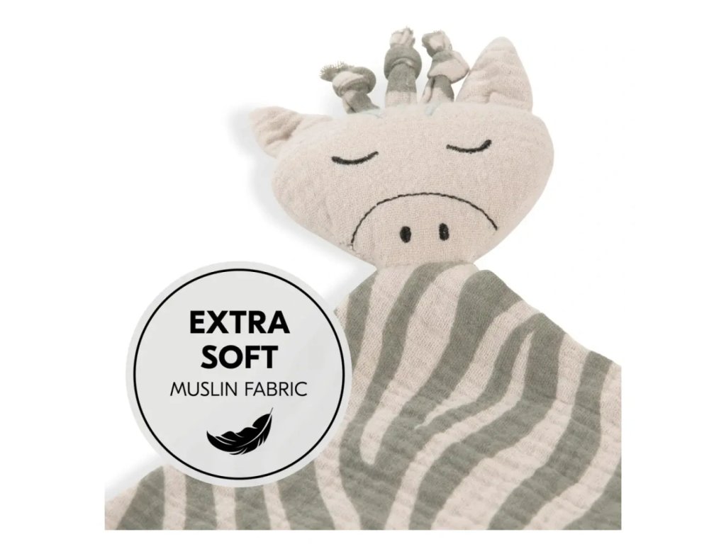 Táto všestranná paplónka s tváričkou zvieratiek a strapcami vás pozýva na uchopenie, ohmatanie, hranie a maznanie. Je to paplón, ktorý pomôže vášmu dieťatku upokojiť sa a zaspať. Extra mäkká mušelínová látka je obzvlášť šetrná k pokožke vášho dieťatka. Vysokokvalitná, ľahko udržiavateľná mušelínová látka sa ľahko perie v práčke pri teplote 60 °C. To znamená, že je rýchlo pripravená na opätovné použitie a vydrží vám dlho.