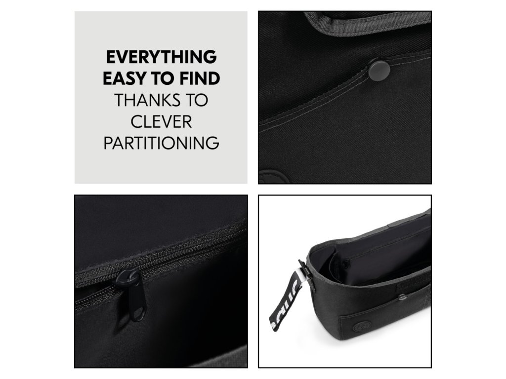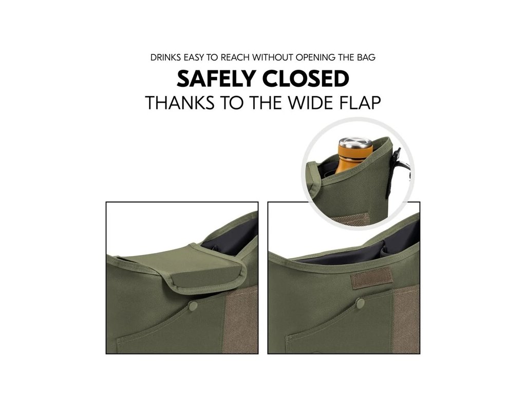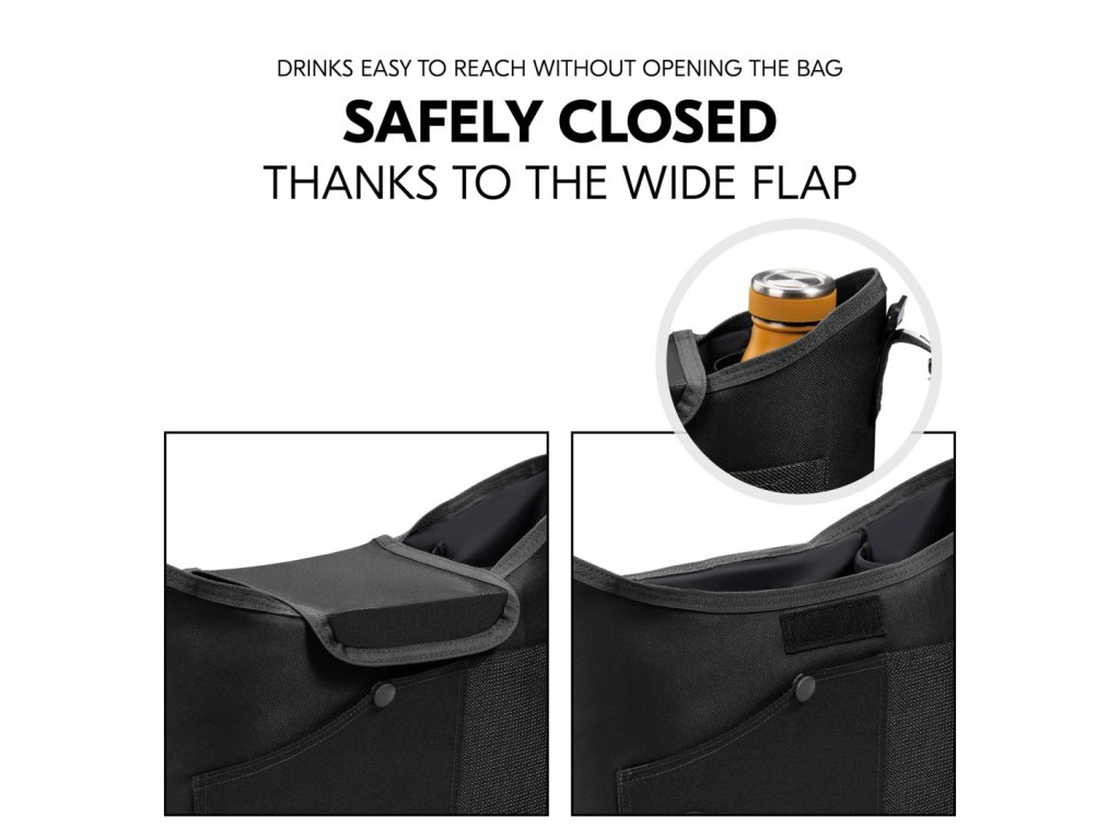 ĽAHKÝ PRÍSTUP S PRAKTICKÝM ZAPÍNANÍM // Mimoriadne široká, odolná klapka sa uzatvára a chráni vnútro organizéra, zatiaľ čo bočné otvory na fľaše zostávajú ľahko prístupné.