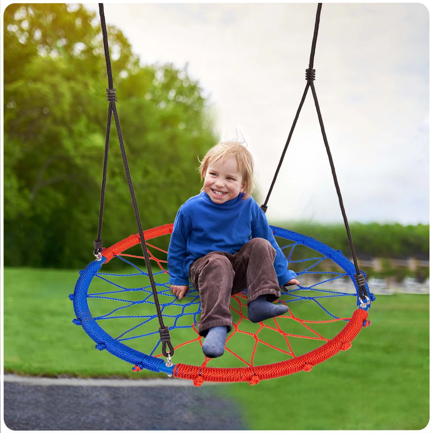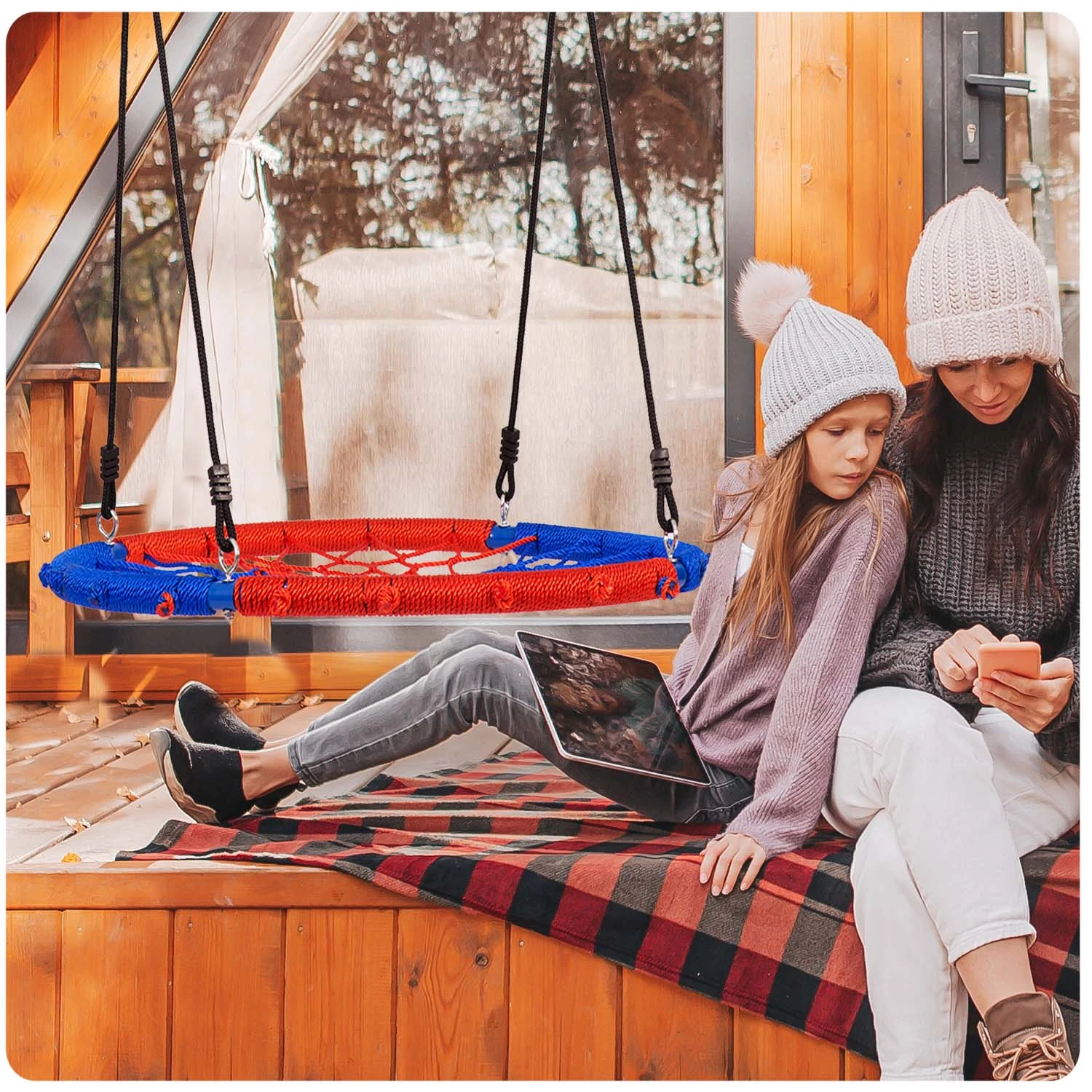 Hojdačka okrúhla Swingo 95cm - bocianie hniezdo modro-červená