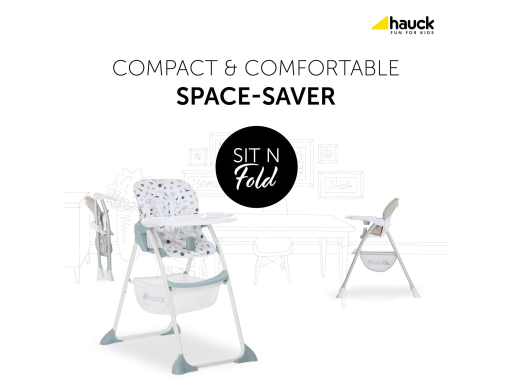 Stabilná stolička Hauck SIT N FOLD ponúka optimálne pohodlie pri stolovaní. Stolička sa dá zložiť do kompaktnej veľkosti, takže nezaberá miesto v malej kuchyni, jedálni či na balkóne. Jedálenskú stoličku Sit N Fold je možné veľmi ľahko a rýchlo zložiť do plochého tvaru, takže sa vojde do každej komôrky. Nepotrebujete viac, ako uchopiť bočné tlačidlá. Vďaka priestornému pultu môžete stoličku Sit N Fold používať kedykoľvek potrebujete. Odnímateľný pult sa dá nastaviť do hĺbky podľa potrieb a poskytne tak dostatok priestoru pre rastúce dieťatko. Po jedle sa dá tácka vytiahnuť a zavesiť zozadu na rám a dá sa aj aj dobre čistiť.