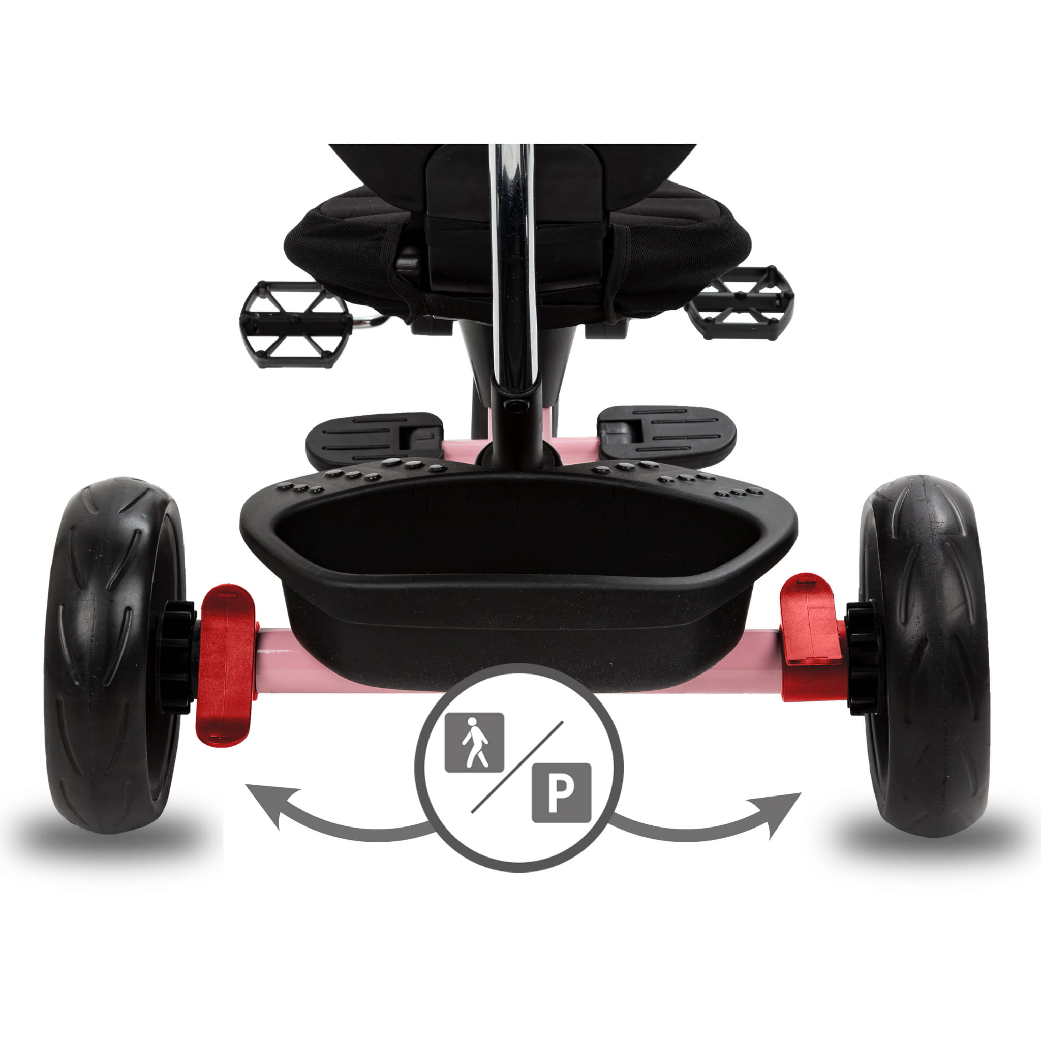 - Batoľa môže ľahko oprieť nohy o rozkladacie, pohodlné, protišmykové podložky a užívať si jazdu
