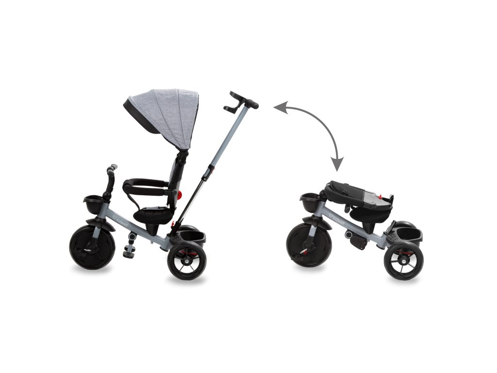 - Sklopné operadlo sedadla a riadidlá, ako aj odnímateľná rukoväť na vedenie bicykla vám umožňujú zmenšiť veľkosť bicykla, čo uľahčuje prepravu a skladovanie