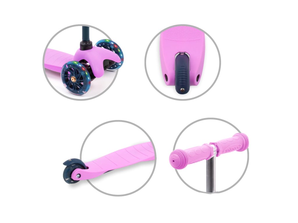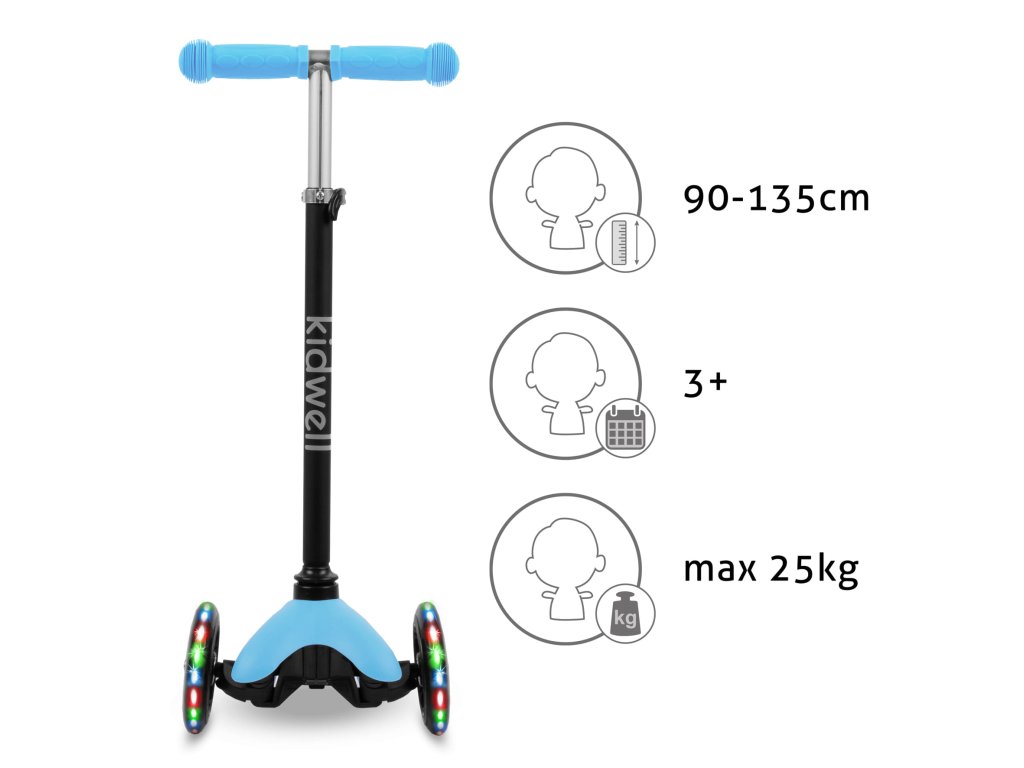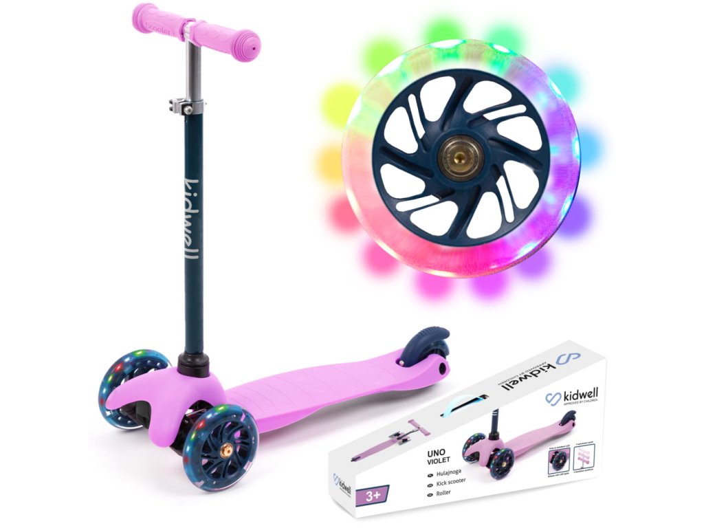 Model Uno je trojkolesová balančná kolobežka, ktorá je najlepšia pre začiatočníkov, ľahko ovládateľná, stabilná a ľahká. Jeho žiariace kruhy/kolesá povzbudia k aktivite.