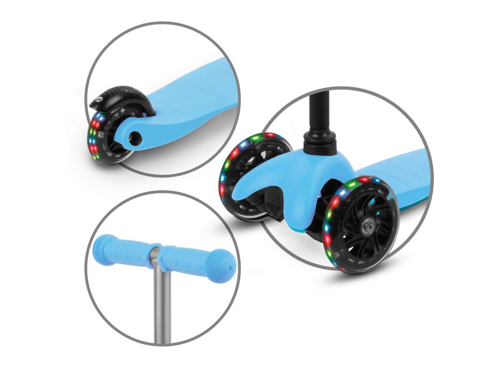 - LED svetlá zabudované v kolesách, ktoré svietia pri jazde