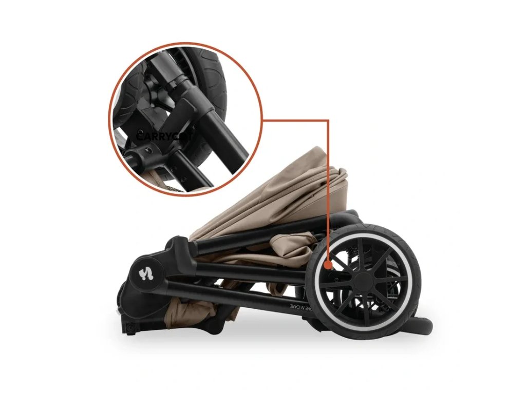Robustný hliníkový rám, výškovo nastaviteľná teleskopická rukoväť a prepravná poistka: Športový kočík Move N Care vám vždy uľahčí prácu – či už kočík tlačíte alebo ho skladáte.