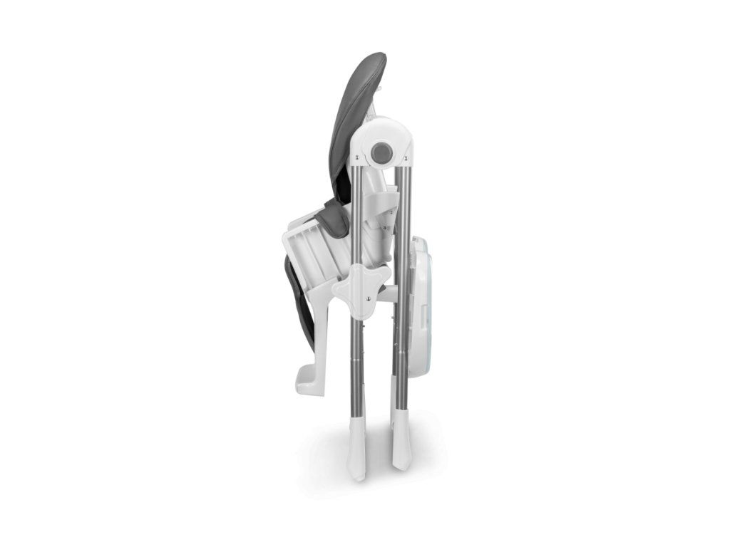Detská jedálenská stolička, ktorú je možné ľahko sklopiť čím šetrí dôležité miesto. Stolička má pevný kovový rám a pohodlnú mäkkú vložku na sedenie. Stoličku je možné výškovo regulovať. Rovnako je možné regulovať aj vzdialenosť tácky.