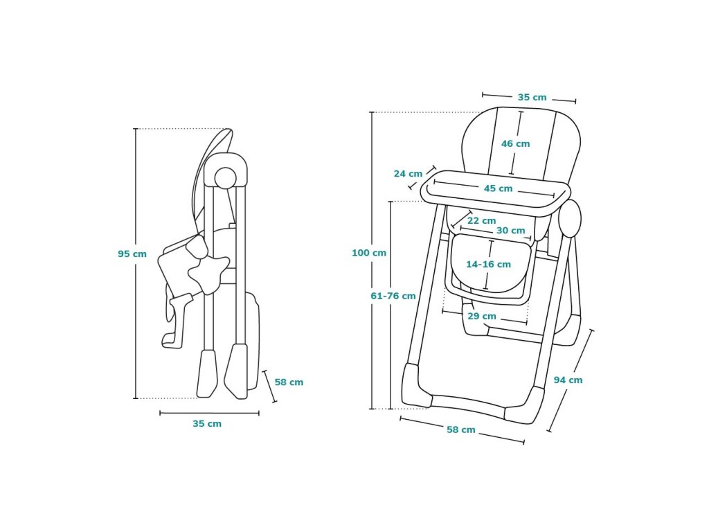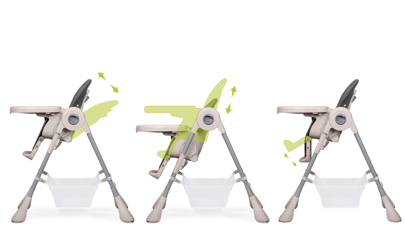 - Sklopná chrbtová opierka je zárukou pohodlného odpočinku po jedle, zatiaľ čo mäkké polstrovanie, ktorého boky sú akoby nafúknuté, zabraňuje zaboreniu alebo skĺznutiu dieťaťa do sedačky.