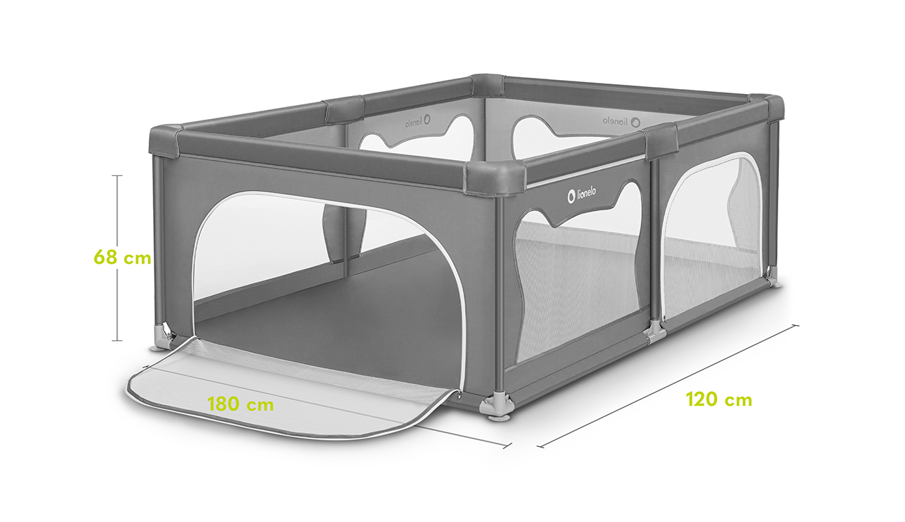 Ohrádka Willow je produkt, ktorý vám umožní vytvoriť bezpečný priestor pre vaše dieťa, v ktorom bude môcť tráviť čas samostatne. Mäkké boky vyrobené zo sieťoviny nielen minimalizujú riziko nárazu, ale tiež zaisťujú cirkuláciu vzduchu a umožňujú vám mať dieťa na očiach aj z veľkej vzdialenosti. Dva bočné vstupy na zips umožňujú neustálu kontrolu priestoru. Všetky konštrukčné prvky boli chránené vrstvou peny a sú umiestnené mimo ohrádky, takže dieťa k nim nemá prístup. Výrobok umožňuje deťom voľne sa hrať, trénovať najprv plazenie alebo státie, kroky.