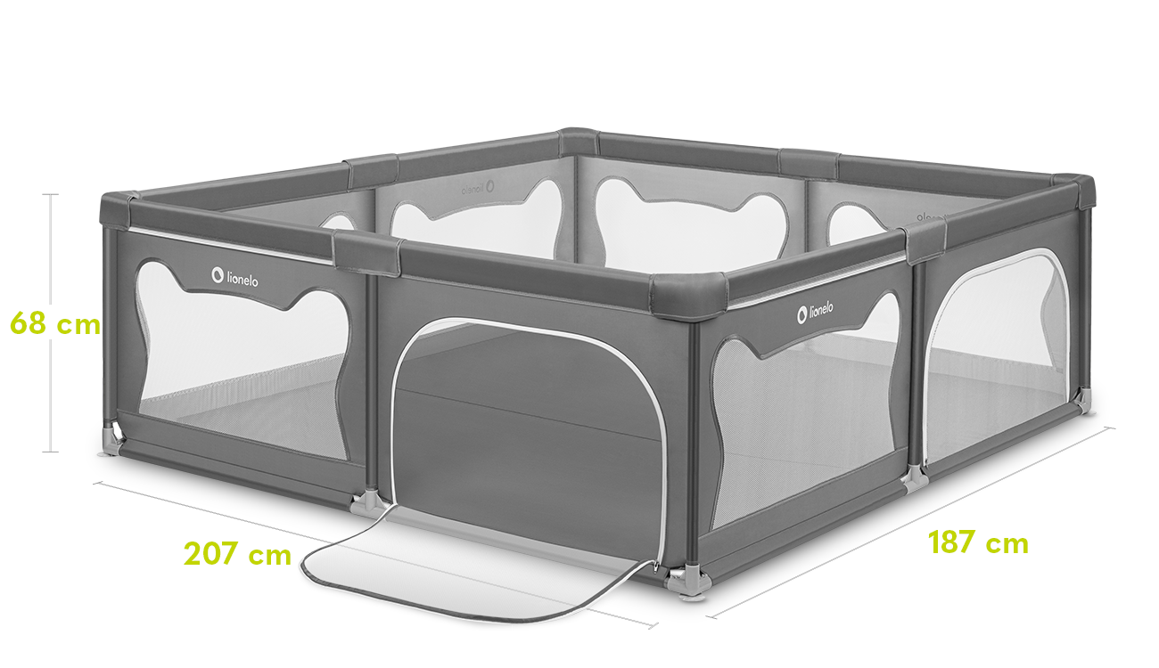 Ohrádka Willow XL je produkt, ktorý vám umožní vytvoriť bezpečný priestor pre vaše dieťa, v ktorom bude môcť tráviť čas samostatne. Mäkké boky vyrobené zo sieťoviny nielen minimalizujú riziko nárazu, ale tiež zaisťujú cirkuláciu vzduchu a umožňujú vám mať dieťa na očiach aj z veľkej vzdialenosti. Dva bočné vstupy na zips umožňujú neustálu kontrolu priestoru. Všetky konštrukčné prvky boli chránené vrstvou peny a sú umiestnené mimo ohrádky, takže dieťa k nim nemá prístup. Veľkosť je však veľká. Výrobok umožňuje deťom voľne sa hrať, trénovať najprv plazenie alebo státie, kroky.