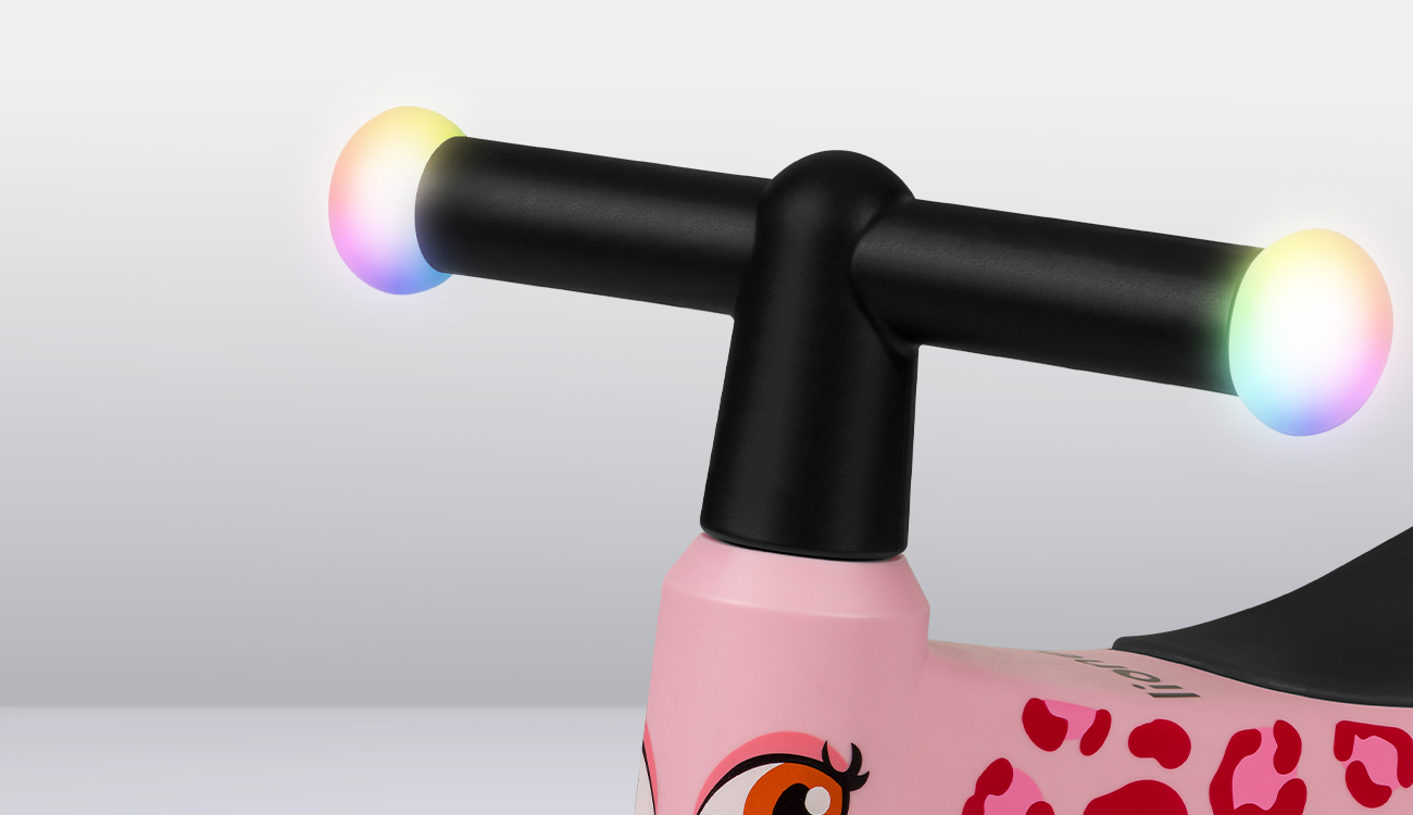 Zábava musí byť skvelá, no predovšetkým bezpečná. Posadením dieťaťa naodrážadlo Lionelo Sammy Pink Rose si môžete byť istí, že sa vášmu drobcovi nič nestane. Rukoväte riadidiel majú osvetlenie, ktoré sa aktivuje pohybovým senzorom a automaticky sa vypne. Navyše sa trblieta v rôznych farbách! Protišmykové sú aj rukoväte.