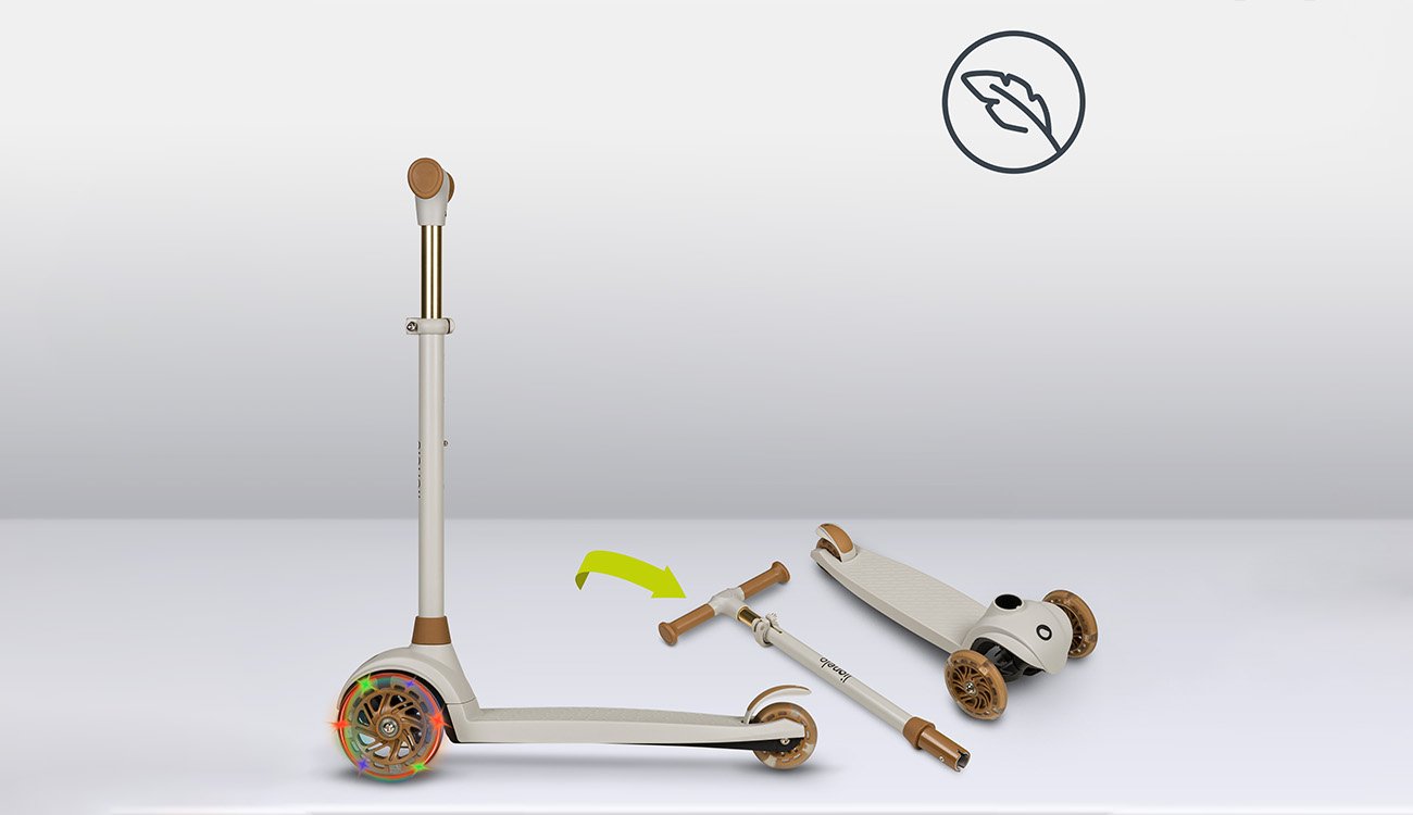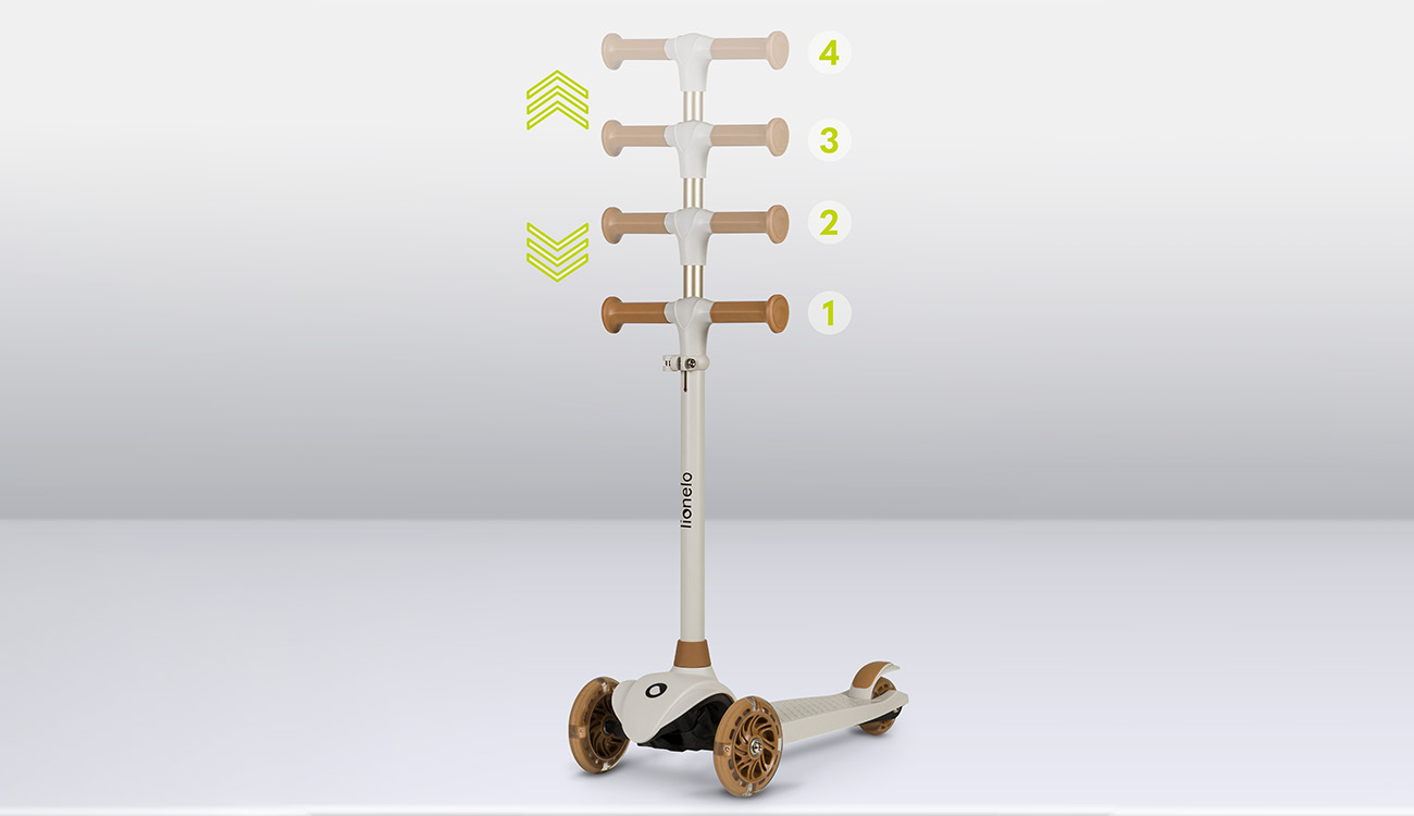 Naša kolobežka je priateľská nielen k deťom, ale aj k rodičom. Vďaka 4-stupňovému nastaveniu výšky riadidiel (65/70/75/80 cm) kolobežka rastie s dieťaťom. Navyše, ľahké čistenie rámu vlhkou handričkou a veľmi nízka hmotnosť produktu uľahčujú údržbu skútra a pohyb v prípade potreby. Inovatívny systém montáže volantu eliminuje potrebu zložitého vyrovnávania kolies a volantu, čo rodičom uľahčuje bezpečnú inštaláciu.