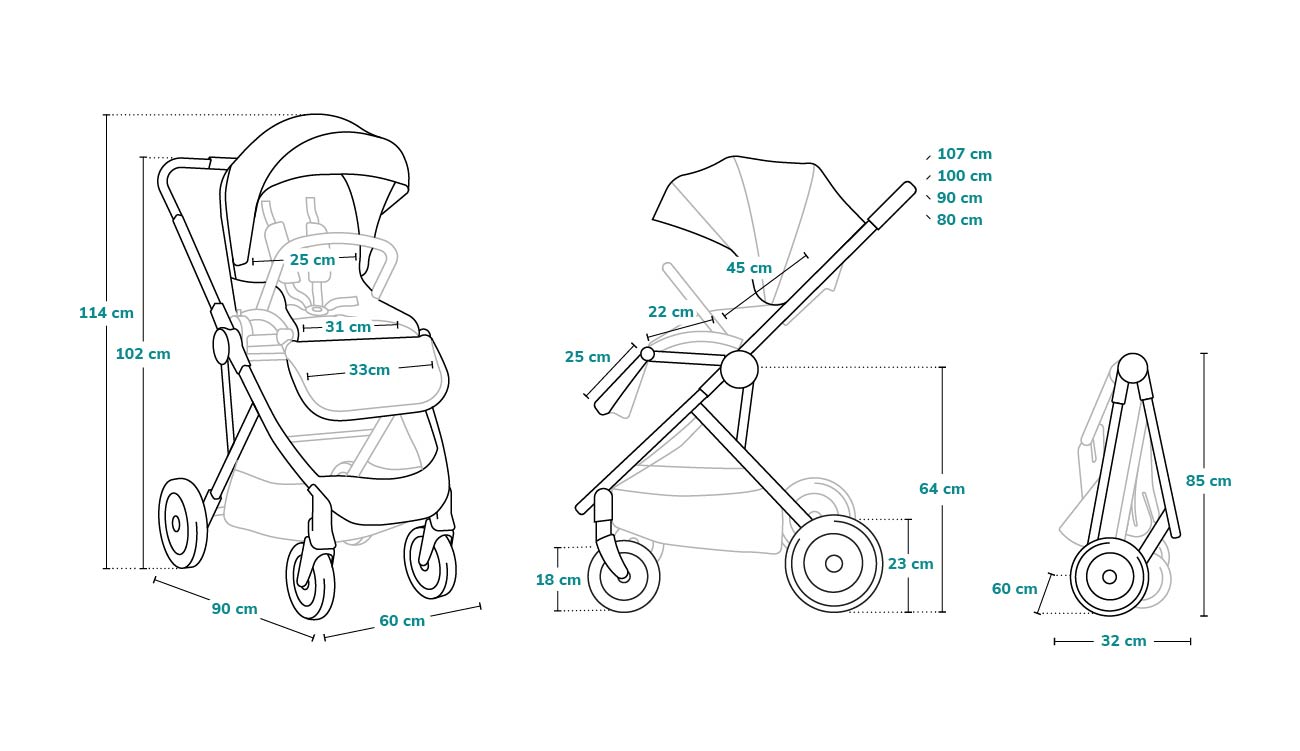 Kočík je dodávaný so sedačkou v smere alebo proti smeru jazdy a jednoduchým systémom skladania