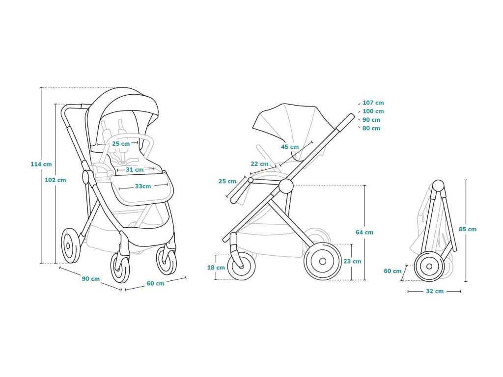 Kočík je dodávaný so sedačkou v smere alebo proti smeru jazdy a jednoduchým systémom skladania