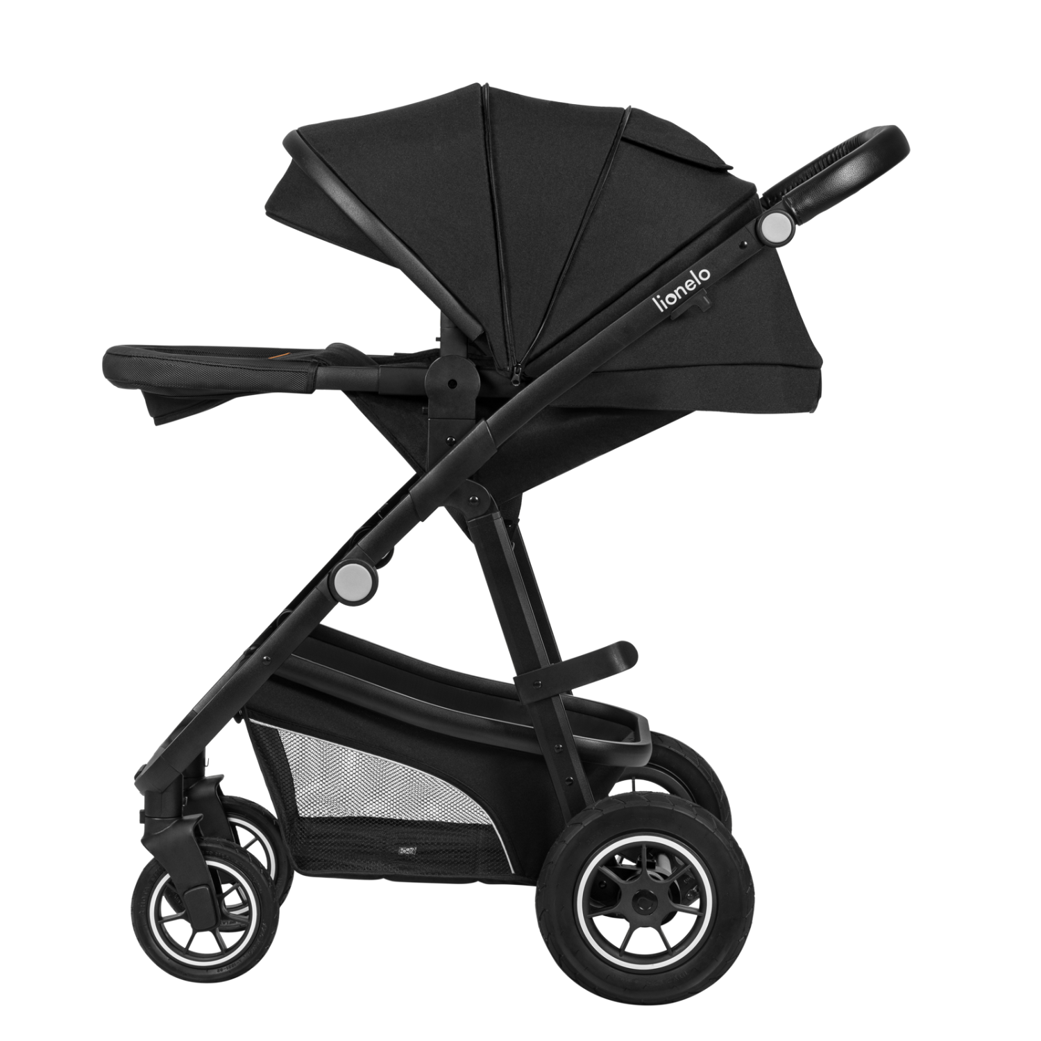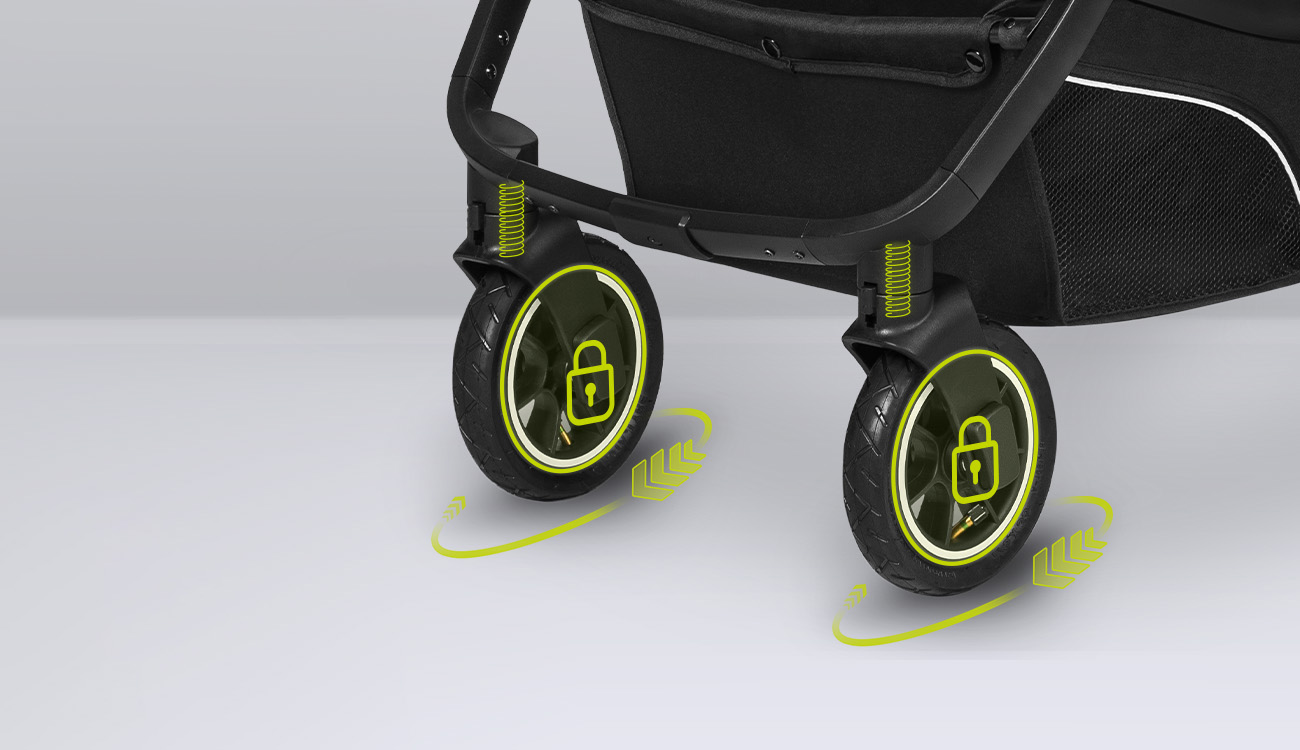 Kolesá majú odpruženie ako vpredu, tak vzadu, vďaka čomu bude kočík perfektný aj na nerovnom povrchu. Kolesá sú nafukovacie!