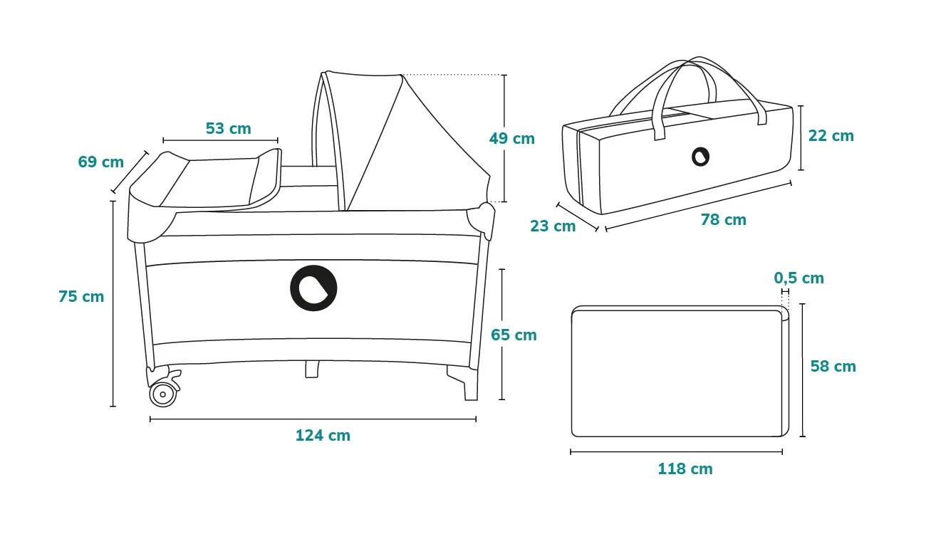 Cestovná postieľka má dve kolieska, vďaka ktorým ju ľahko premiestnite a nohy, ktoré zaručujú... stabilitu. Sada obsahuje praktický organizér, striešku s moskytiérou ,taška a hračky na zavesenie na striešku. Postieľka je navyše vybavená funkčným prebaľovacím pultom môžete ho rozobrať alebo pripevniť k rámu - bez toho, aby ste ho museli odnímať a skladovať samostatne, keď to v danej chvíli nepotrebujete. Lionelo Sven Plus sa dá zložiť do kompaktnej veľkosti , čo vám umožní zbaliť ho do tašky s pohodlnou rukoväťou.