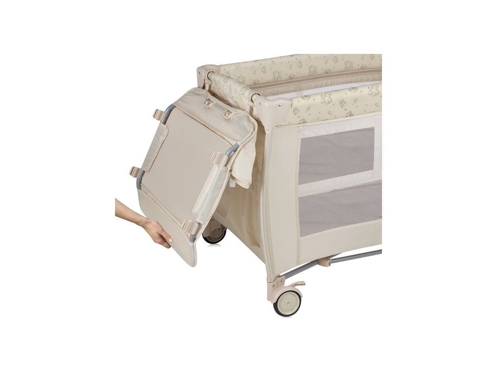 Cestovná postieľka má dve kolieska, vďaka ktorým ju ľahko premiestnite a nohy, ktoré zaručujú stabilitu. Sada obsahuje praktický organizér, striešku s moskytiérou, tašku a hračky na zavesenie na striešku. Postieľka je navyše vybavená funkčným prebaľovacím pultom môžete ho rozobrať alebo pripevniť k rámu - bez toho, aby ste ho museli odnímať a skladovať samostatne, keď to v danej chvíli nepotrebujete. Lionelo Sven Plus sa dá zložiť do kompaktnej veľkosti , čo vám umožní zbaliť ho do tašky s pohodlnou rukoväťou.