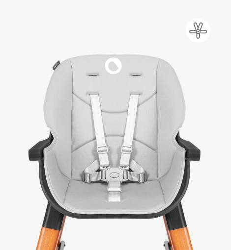 Nastaviteľné 5-bodové pásy udržujú dieťa v správnej polohe pri jedle a zabraňujú jeho vypadnutiu. Mona je vybavená mäkkým a ľahko čistiteľným čalúnením, vďaka ktorému je pohodlná pre dieťa aj pre rodiča.