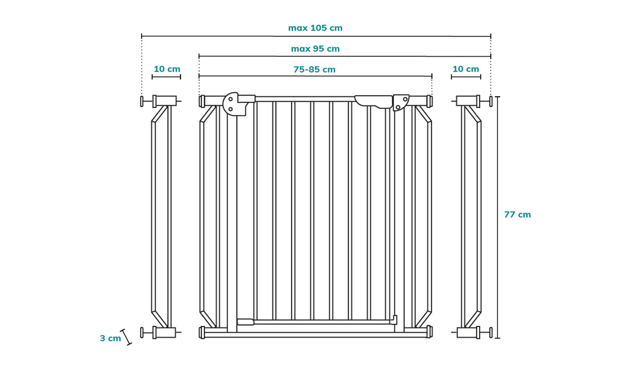 - Zábranu Lionelo Truus Slim môžete rýchlo nainštalovať do priechodu so šírkou od 75 do 105 cm (zábrana samotná je do otvoru 75-85cm. V balení sú dve predĺženia(v cene)po 10cm. Teda maximálna šírka otvoru je 105cm.)