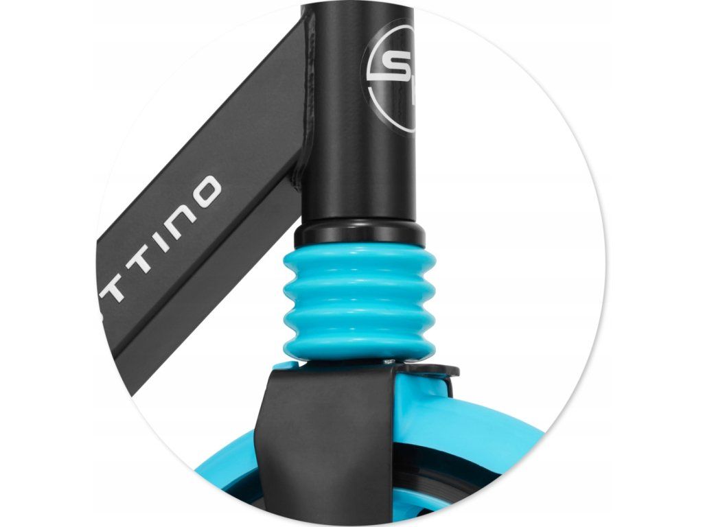-Technológia tlmenia nárazov predného kolesa zaisťuje vysoký komfort jazdy na nerovnom povrchu. -Kolobežka Sesttino Shadow má kvalitný predný tlmič.