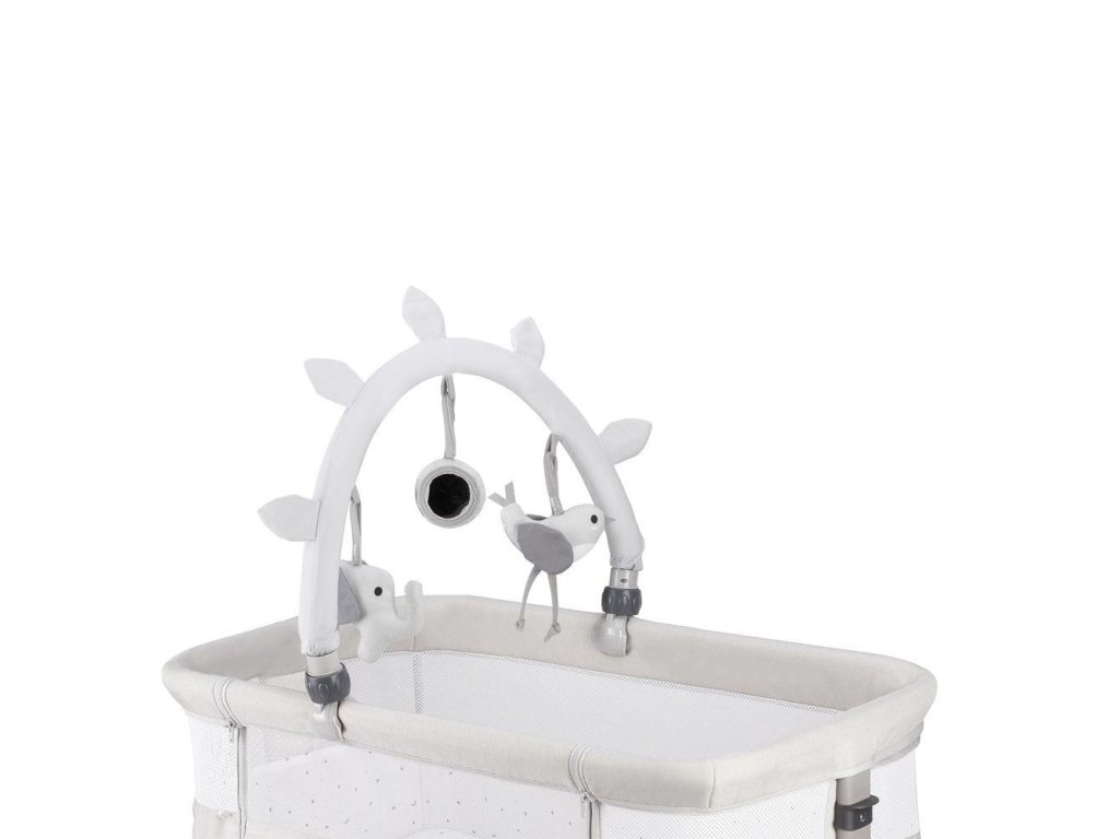 - Súčasťou sady detskej postieľky je oblúk s hračkami, ktorý výrazne podporí zmyslový vývoj vášho dieťaťa. Podporte vývoj svojho dieťatka a pomôžte mu objavovať nové tvary a farby vďaka rôznym hračkám.
