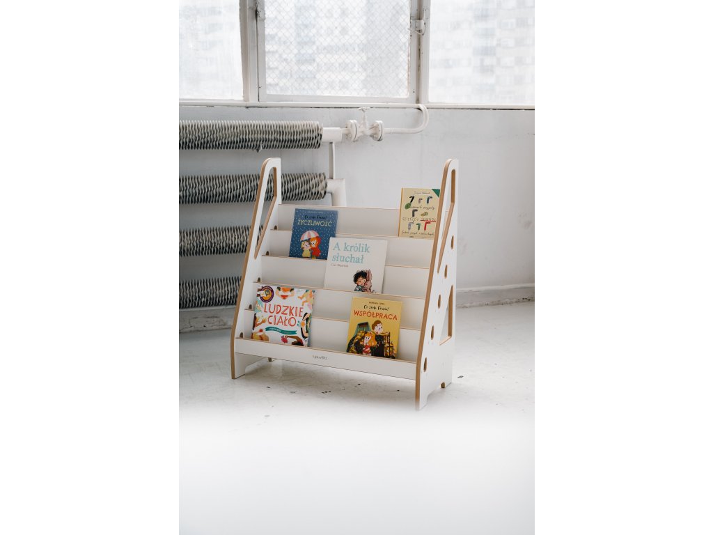V knižnici je 5 políc, jedna z nich je hlboko zapadnutá. V zadnej časti stojana je tiež polica, ktorú môžete použiť. - perfektne sa hodí na stenu! :)