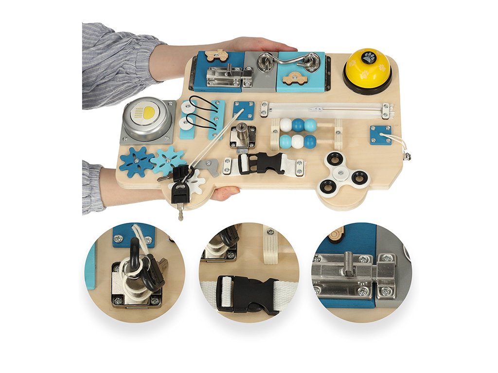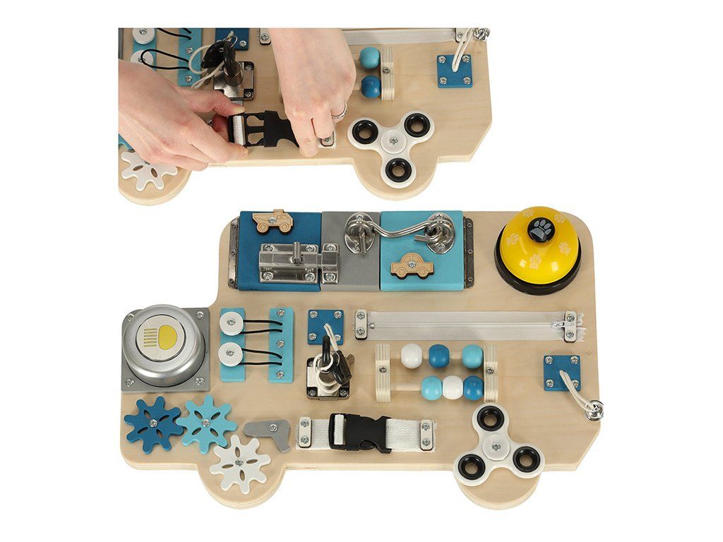 Deti milujú napodobňovať svojich rodičov a siahajú po každodenných predmetoch, no väčšina z týchto vecí je na hru nevhodná. Ako teda môžu rodičia zabezpečiť, aby ich deti mohli spoznávať svet bezpečným spôsobom? Použitím manipulačnej dosky!